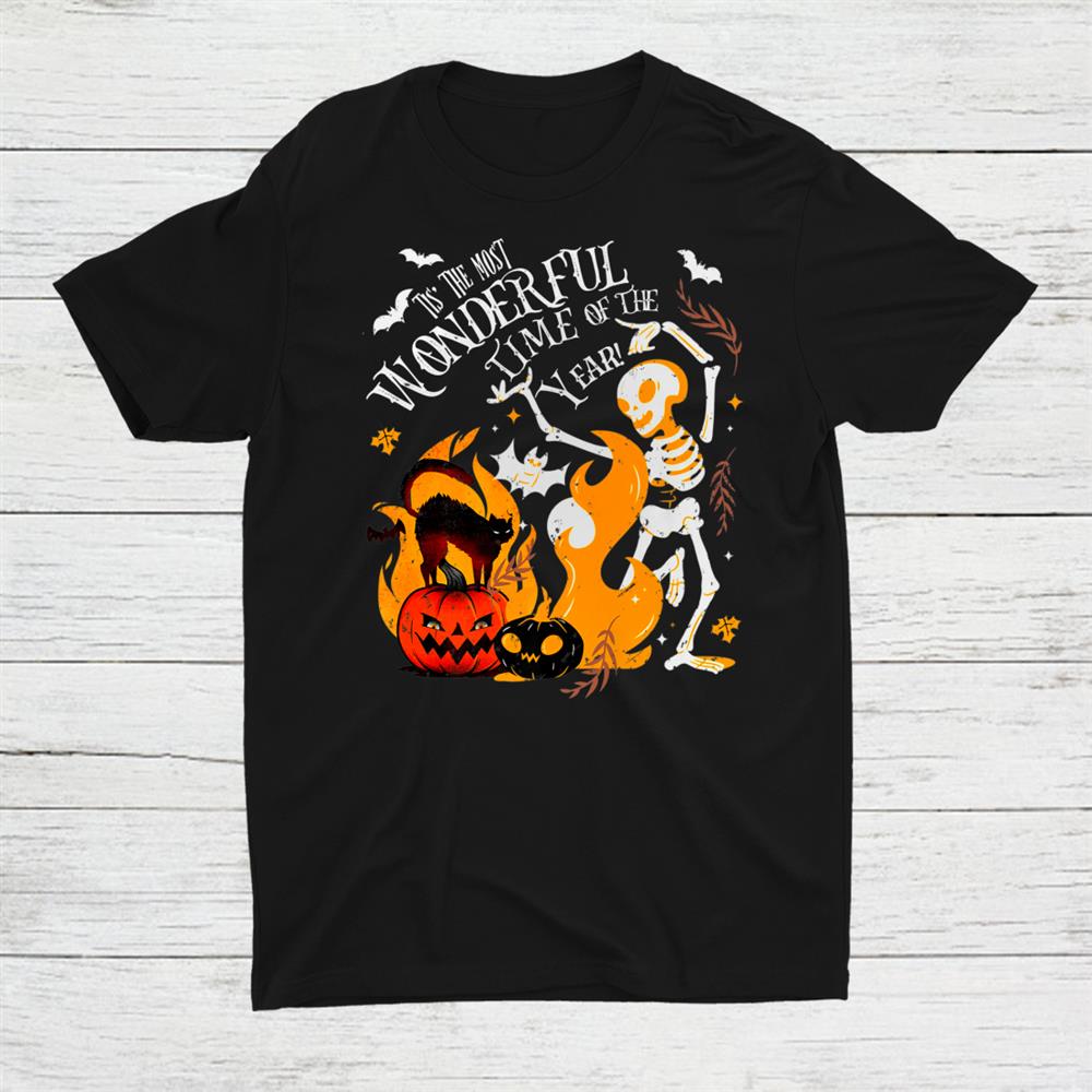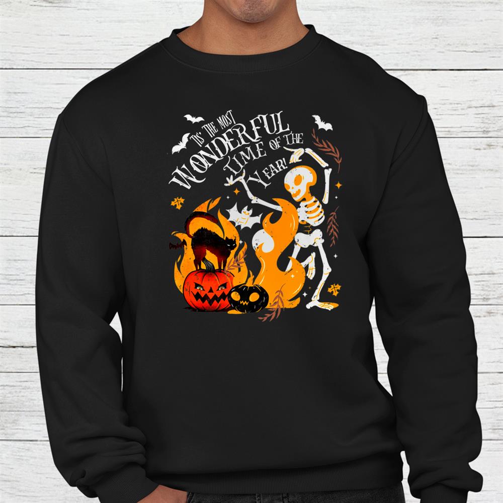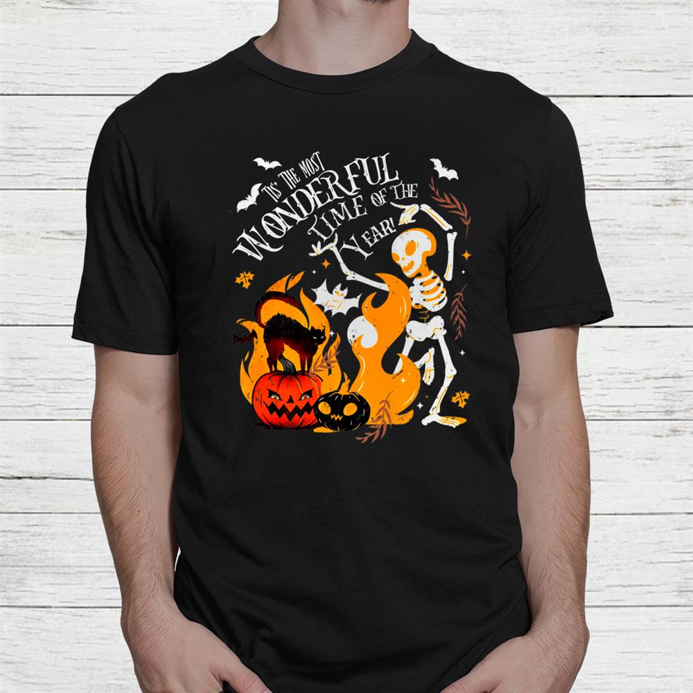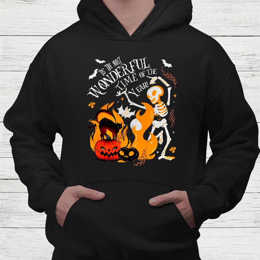 Spooky Season Dancing Skeleton Black Cat Halloween Shirt, hoodie, sweatshirt, long sleeve and ladies T-shirt