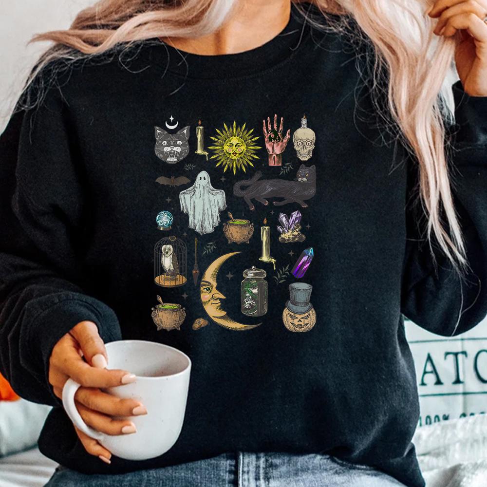 Spooky Witch Ghost Pumpkin Black Cat Skeleton Halloween Shirt, hoodie, sweatshirt, long sleeve and ladies T-shirt