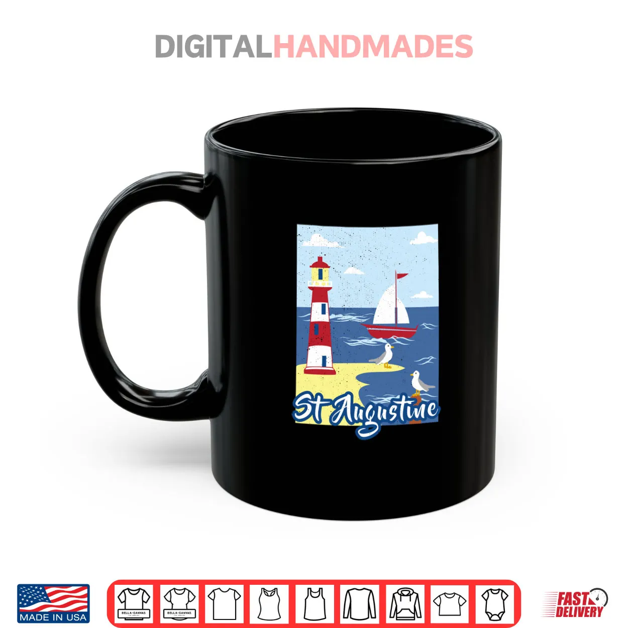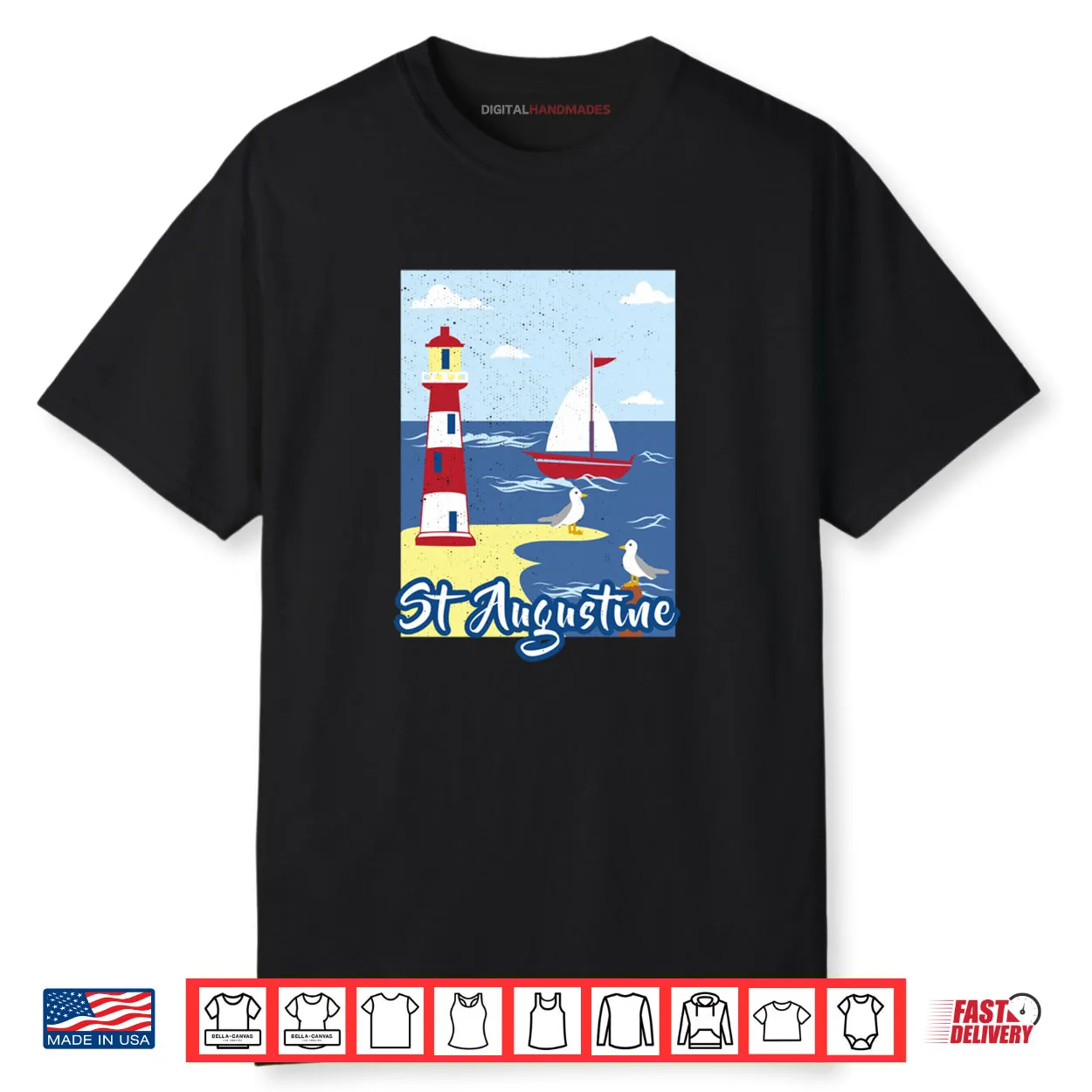 st augustine lighthouse, florida, nautical, seagull, sailboat, travel, beach, souvenir, maritime, coastal, shirt