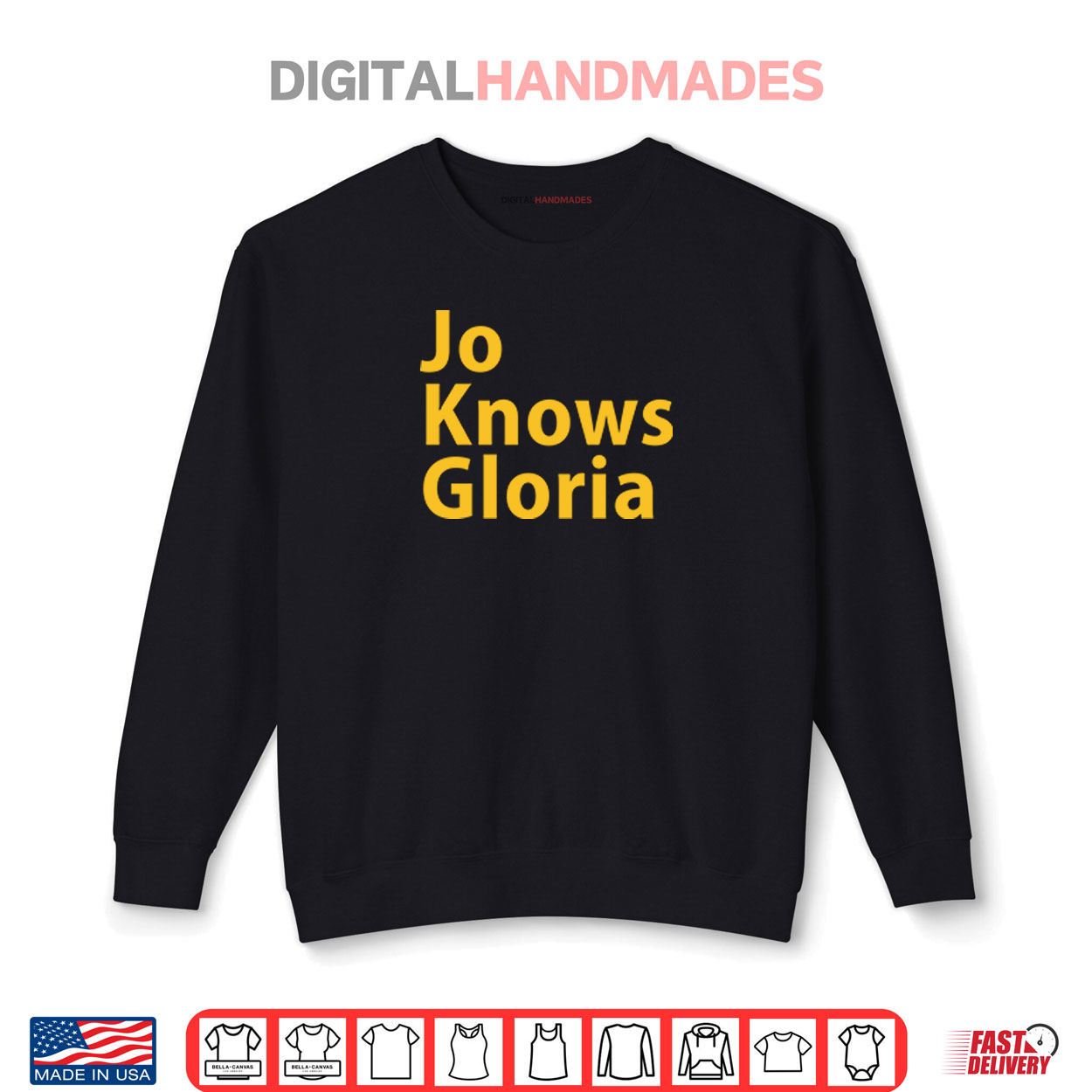 St. Louis Blues fan shirt, Jobu knows Gloria meme, hockey humor tee, playoff win reference, team spirit tee, funny sports superstition, 80s song hockey joke, team good luck charm, quirky fan gear, blues playoff shirt