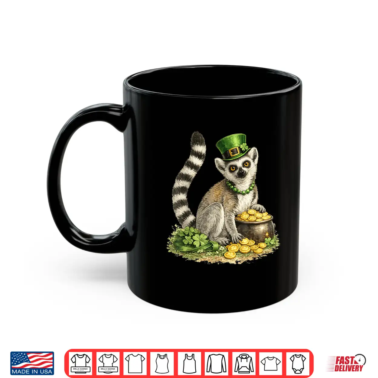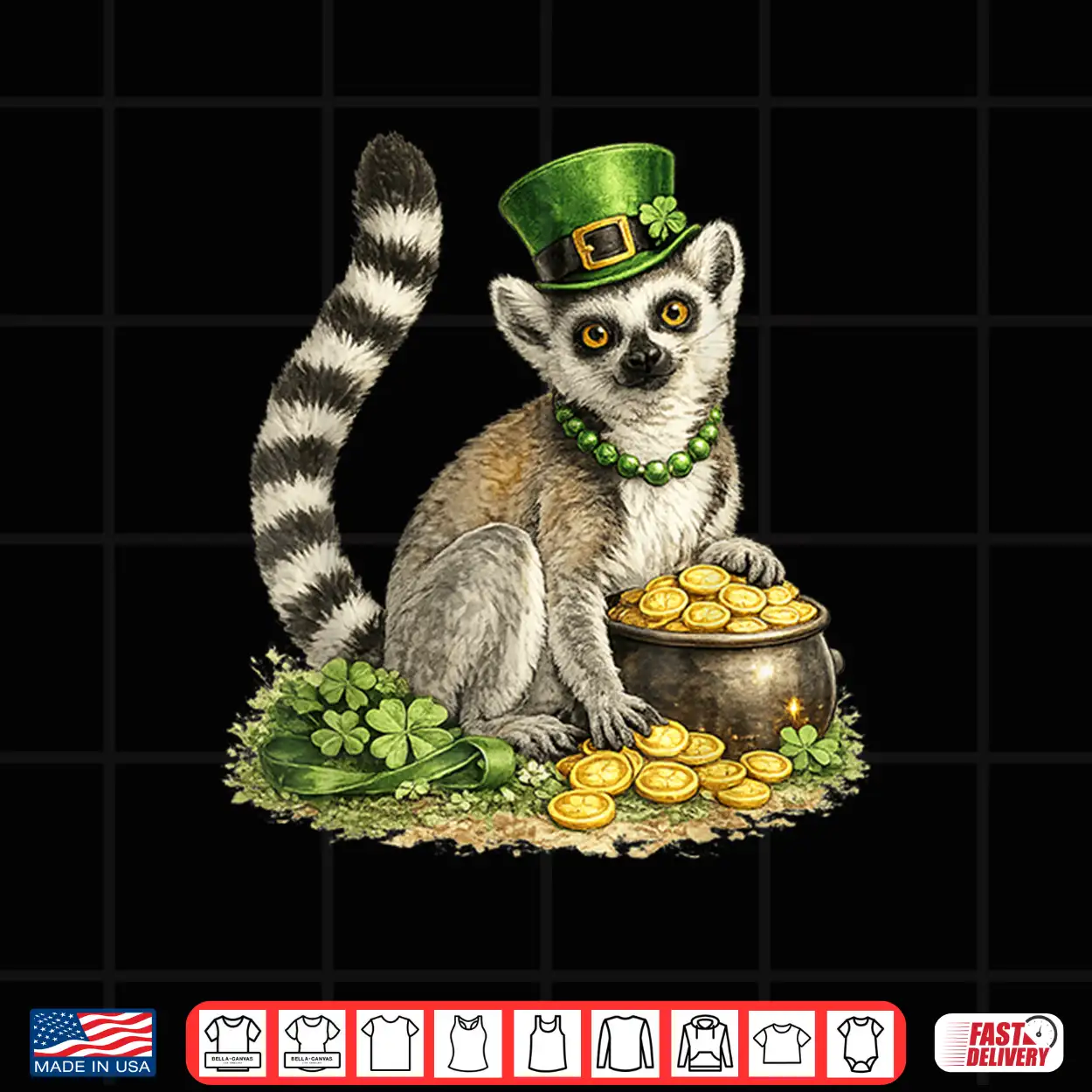 Holiday, Fun, Pot Gold, Animal Art, Lucky, St Patricks, Leprechaun, Irish, Green, Lemur
