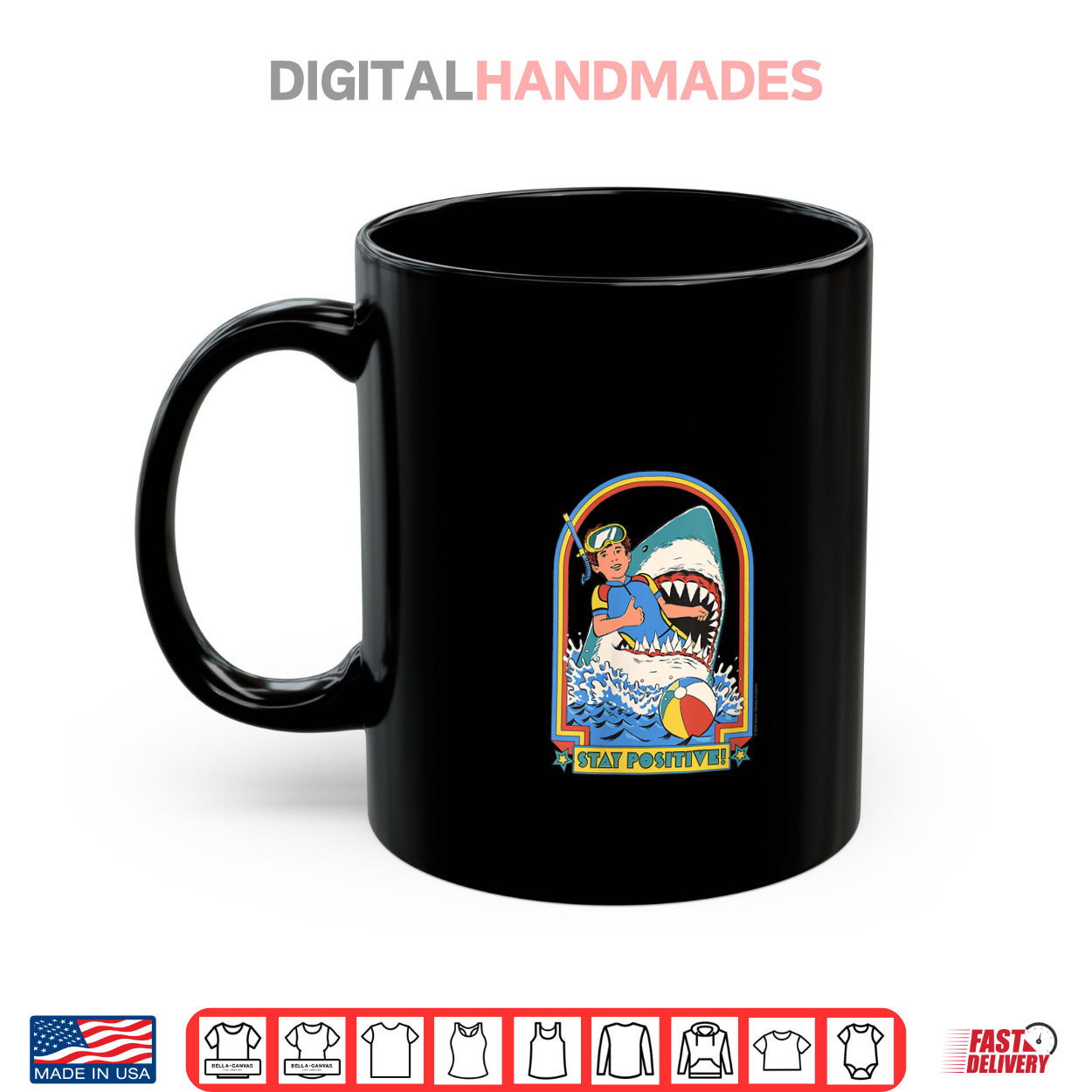 Stay Positive Shark Attack Sarcastic Retro Funny Adult Humor Shirt