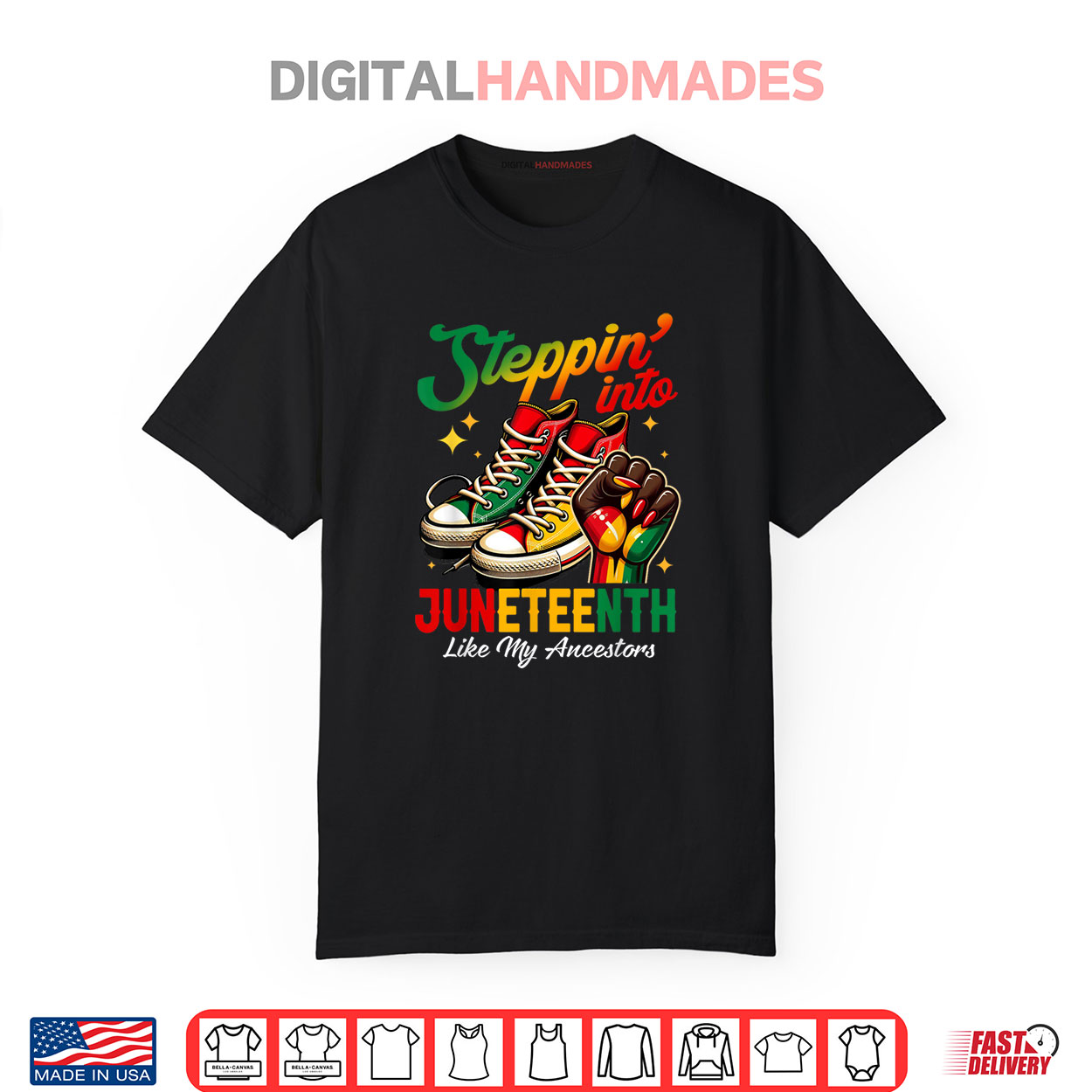 Stepping Into Juneteenth Afro Shirt, Afro Style Juneteenth Walk Shirt, Stepping Into Freedom 1865 Shirt, Black Pride Afro Celebration Shirt, Juneteenth Empowerment Stride Shirt, African American Heritage March Shirt, 1865 Liberation Step Shirt, Confident Afro Juneteenth Shirt, Forward Together Freedom Shirt, Juneteenth Journey Shirt