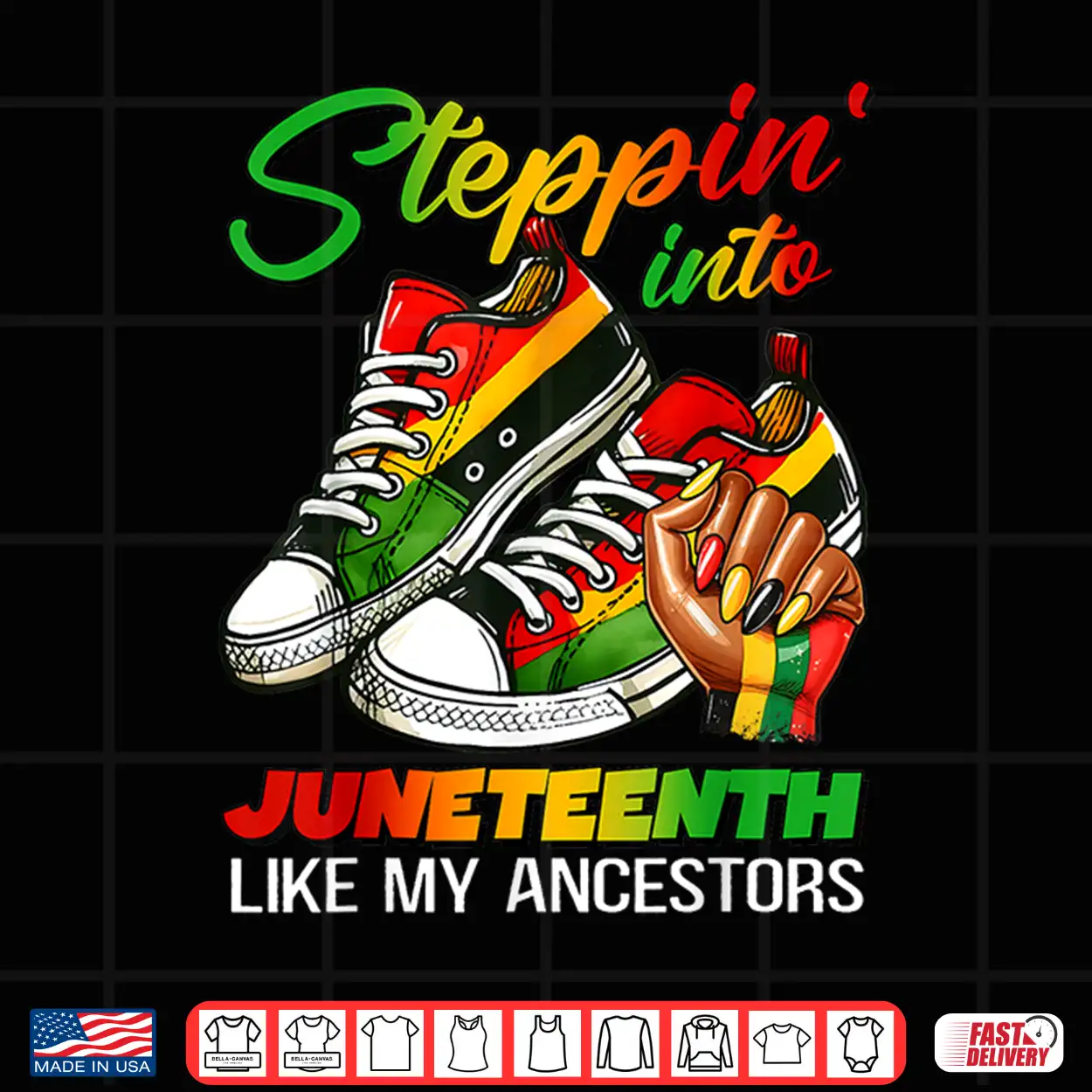 Stepping Into Juneteenth Afro Woman Black Girls Sneakers Shirt