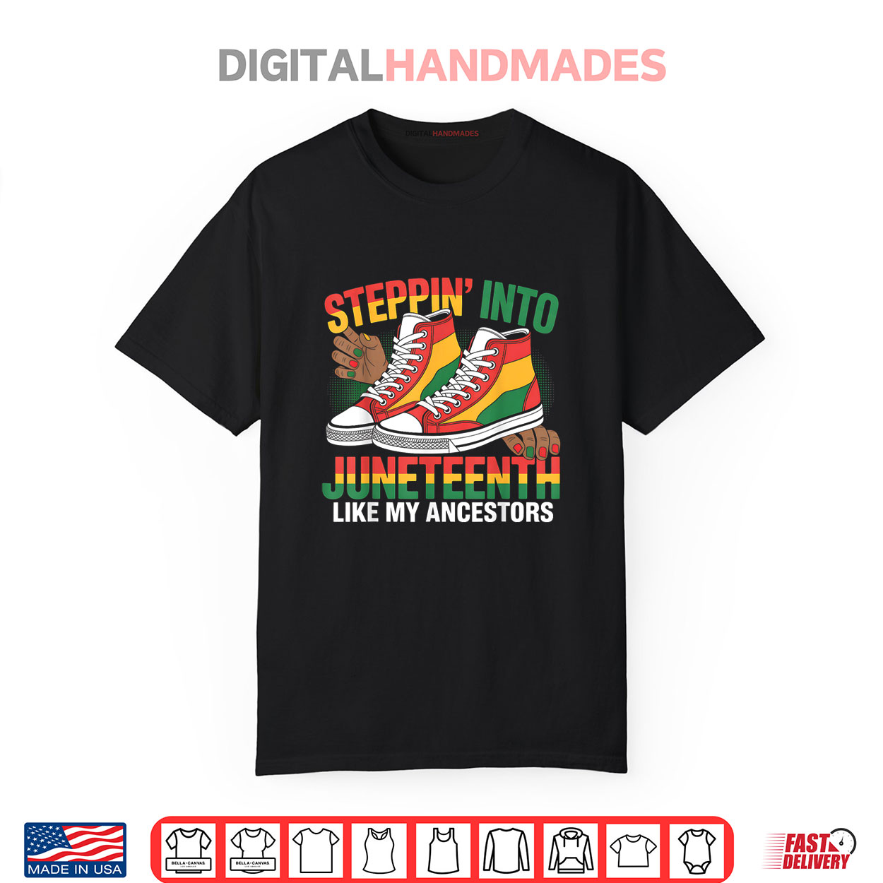 Stepping Into Juneteenth Afro Woman Black Girls Sneakers TShirt, Afro Woman Juneteenth Sneakers Tee Shirt, Black Girls Freedom Style TShirt, 1865 Celebration Graphic Tee Shirt, African American Women Empowerment Top Shirt, Black Girl Magic Steps Forward Graphic Shirt, Juneteenth Modern Fashion TShirt, Confident Stride To Freedom Tee Shirt, Stylish Black Women Sneakers Graphic Shirt, Empowerment In Motion Tee Shirt