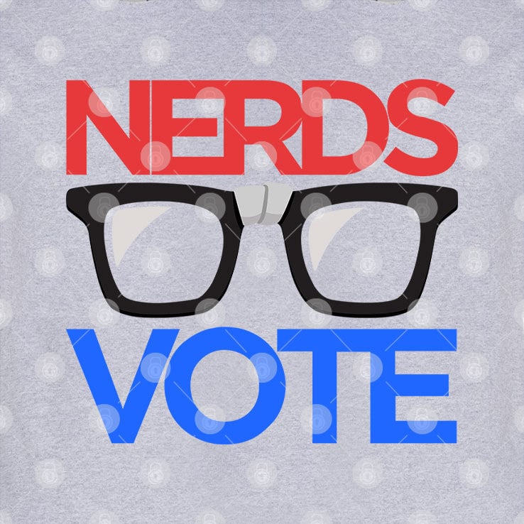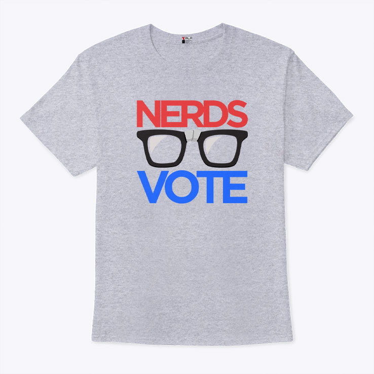 The phrase “Nerds Vote” represents a campaign encouraging people, especially those in the “nerd” community (such as fans of video games, comics, and pop culture), to participate in elections and exercise their right to vote.