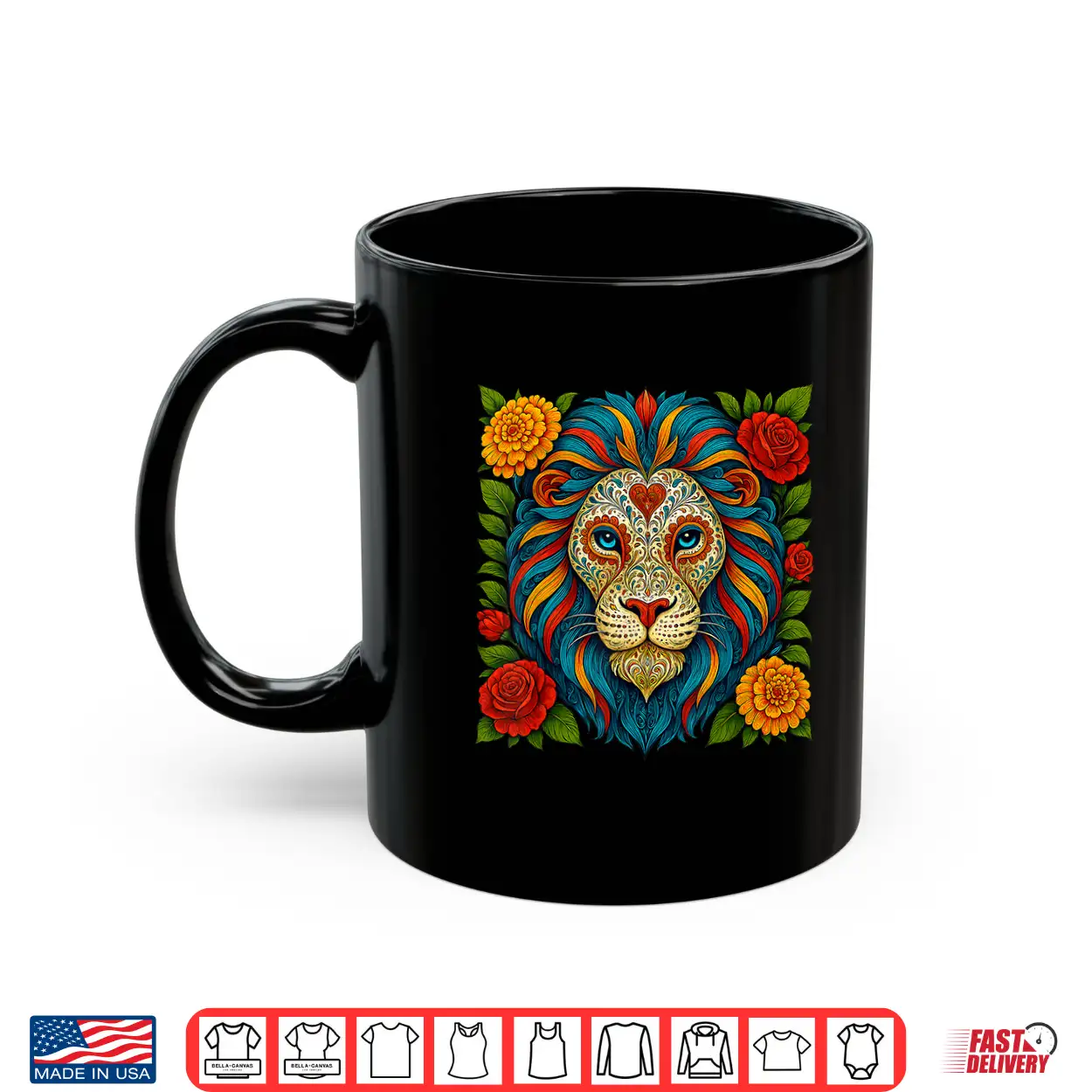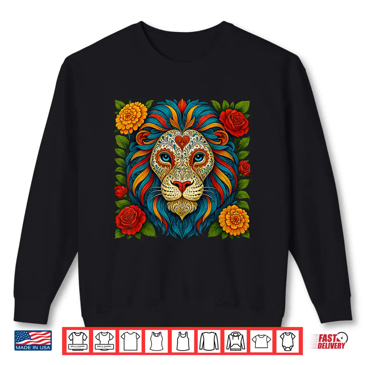 Sugar Skull Lion Dia De Muertos Halloween Day Of The Dead Shirt