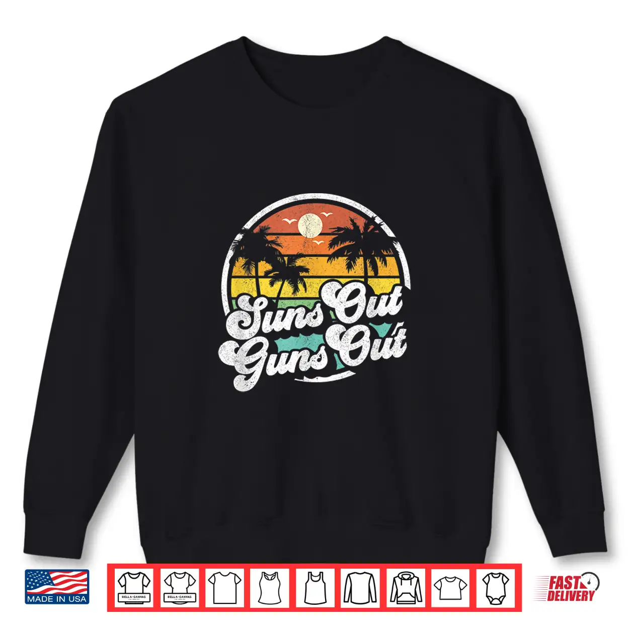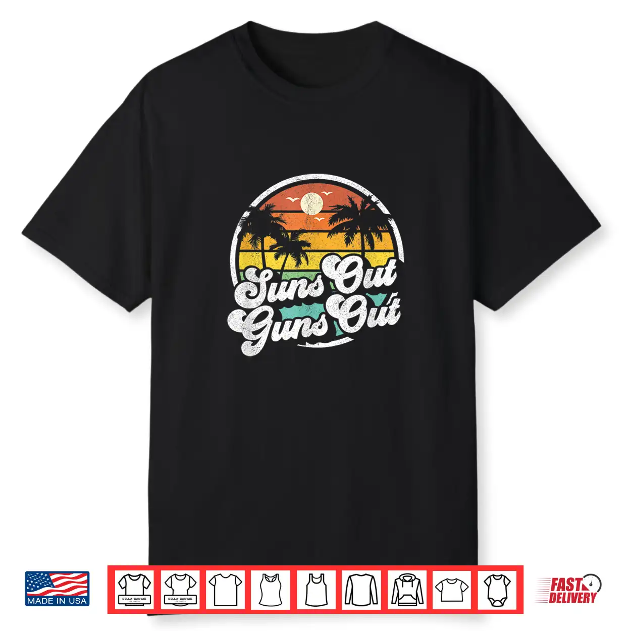 Suns Out Guns Out Funny Beach Vacation Retro Surfing Gift Shirt