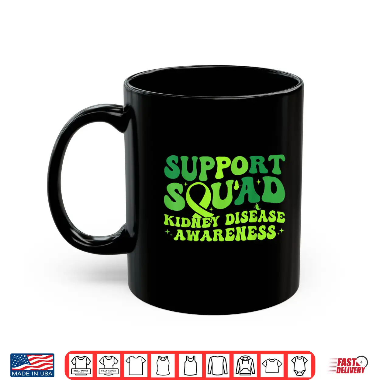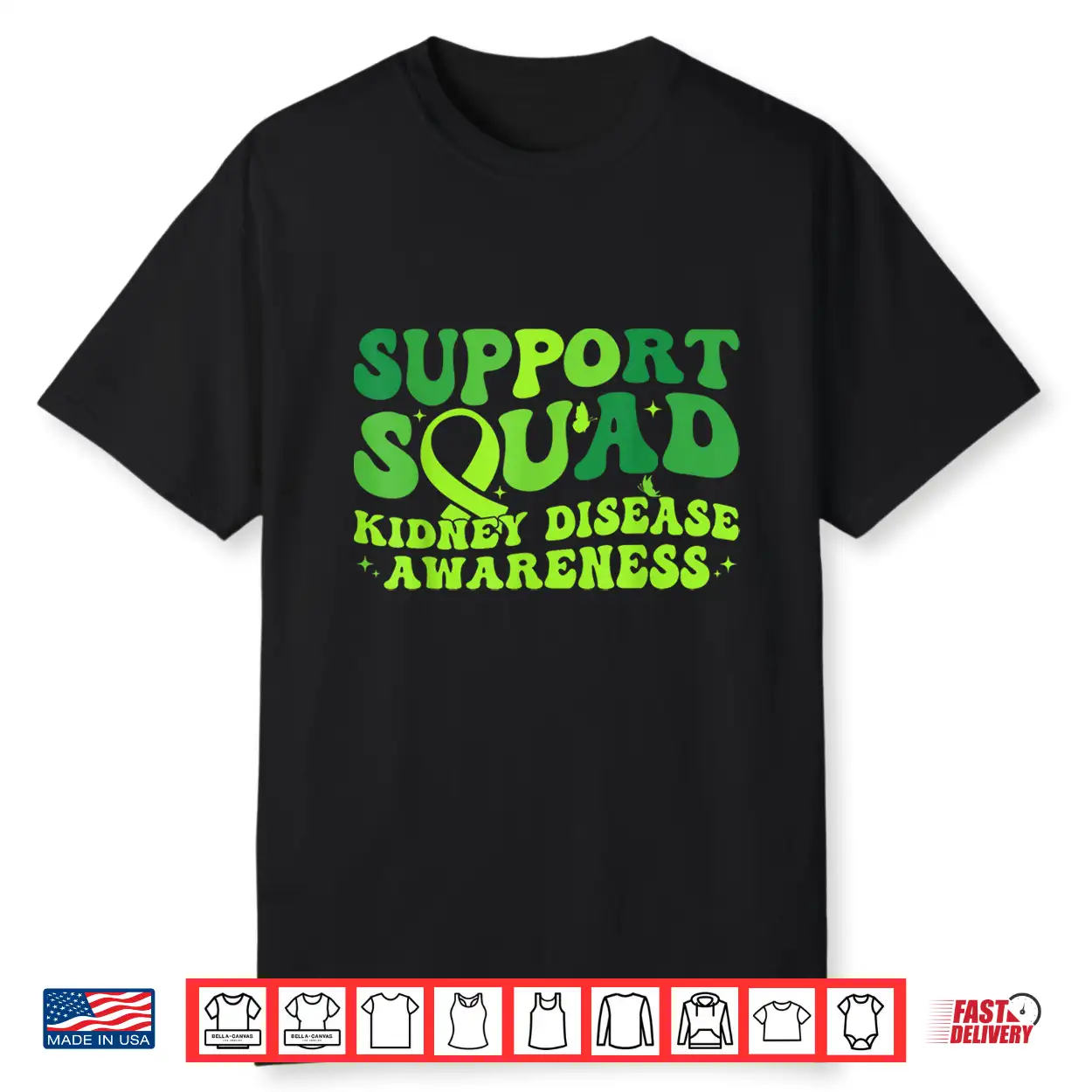 Support Squad Green Ribbon Butterfly Pkd Kidney Disease Shirt
