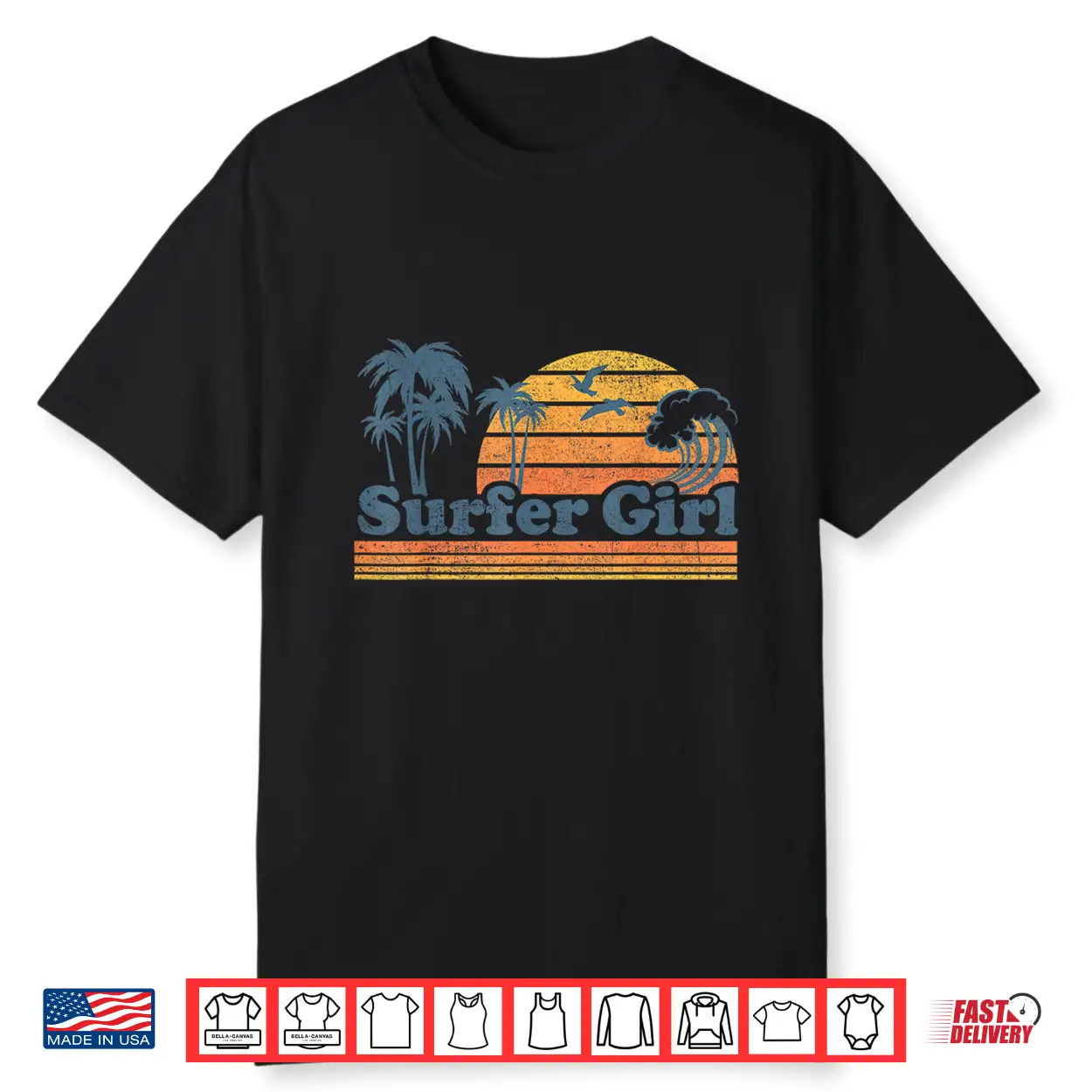 Surfer Girl Surfing Beach Summer Vacation Vintage 70’S Retro Shirt