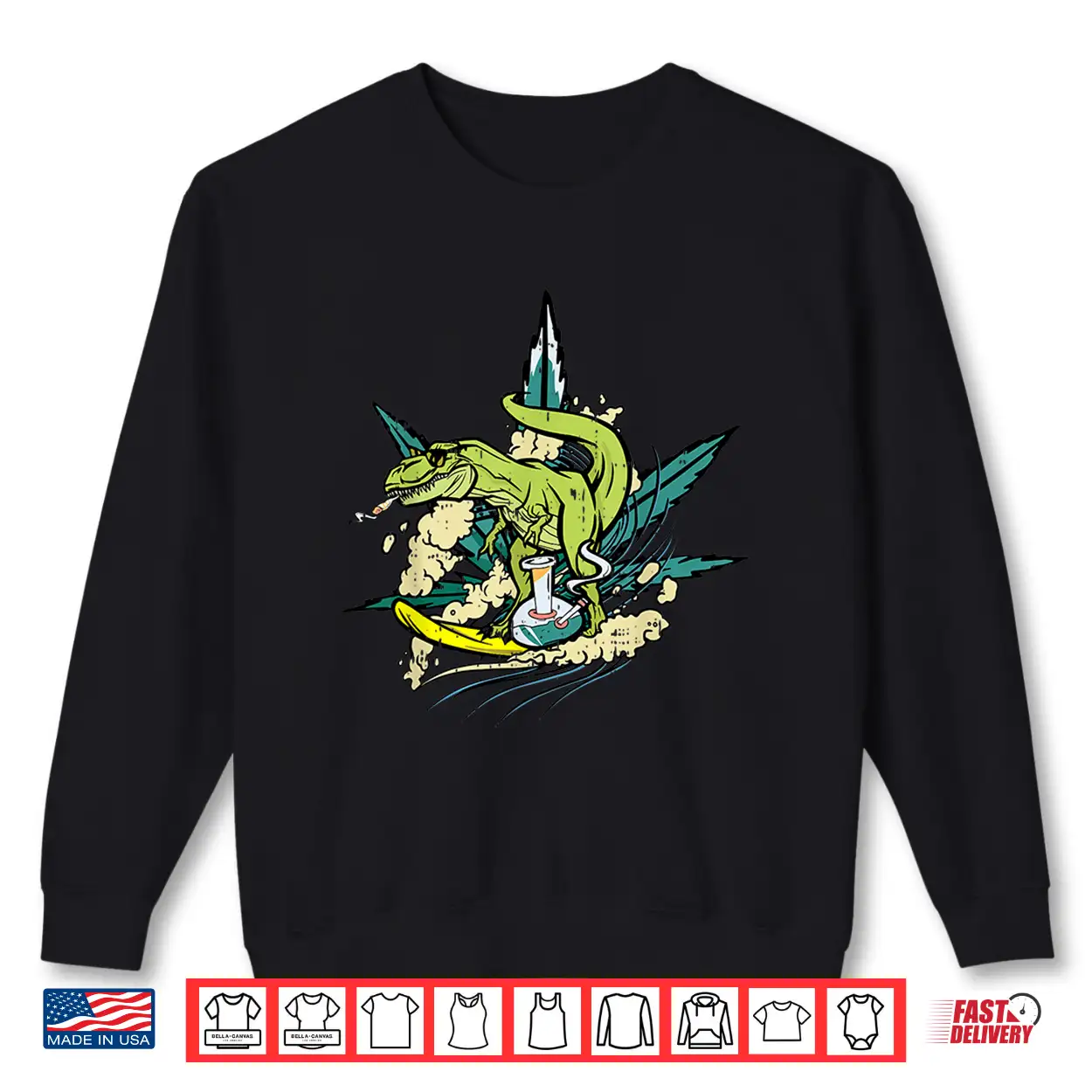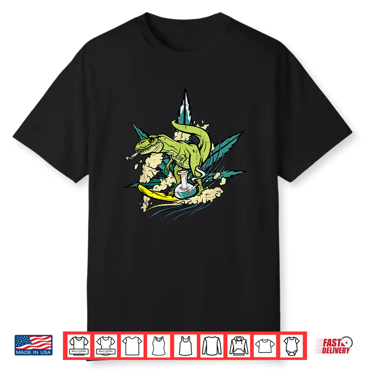 Surfing Dinosaur Smoking Joint Bong Funny Weed Lover Gifts Shirt