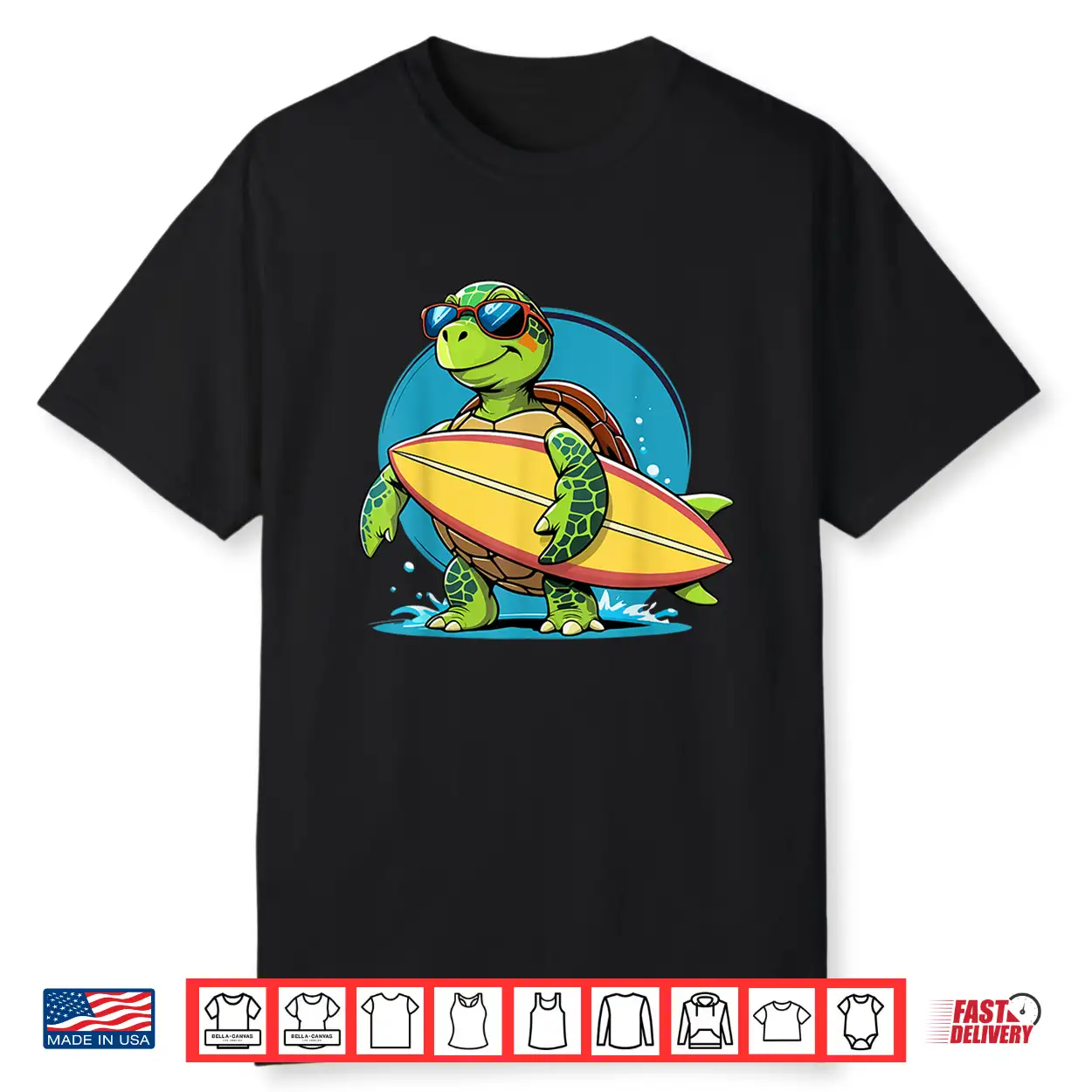 Surfing Turtle With Sunglasses Cool Style Shirt