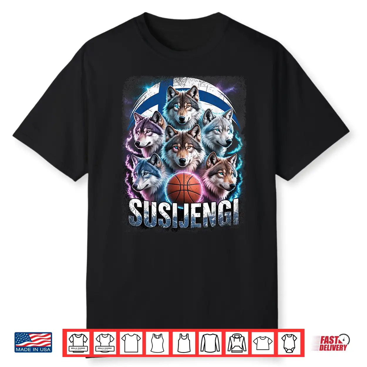 Susijengi Finnish Basketball Fan Suomi Wolf Finland Flag Shirt