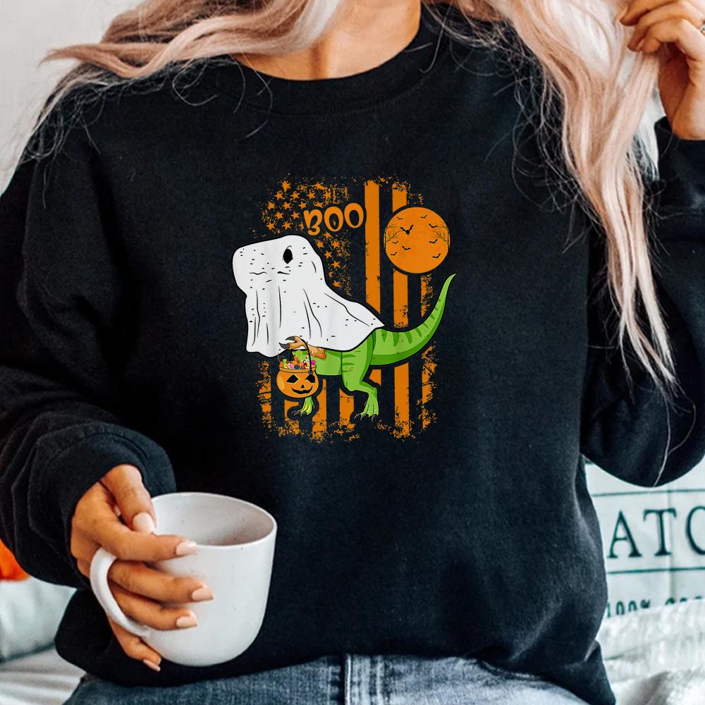T Rex Ghost Dinosaur Boo Halloween Pumpkin Shirt, hoodie, sweatshirt, long sleeve and ladies T-shirt