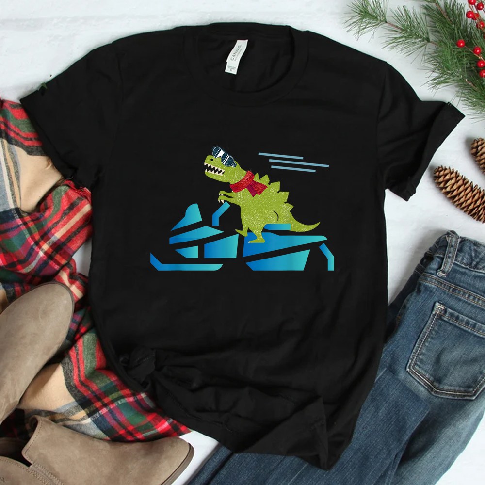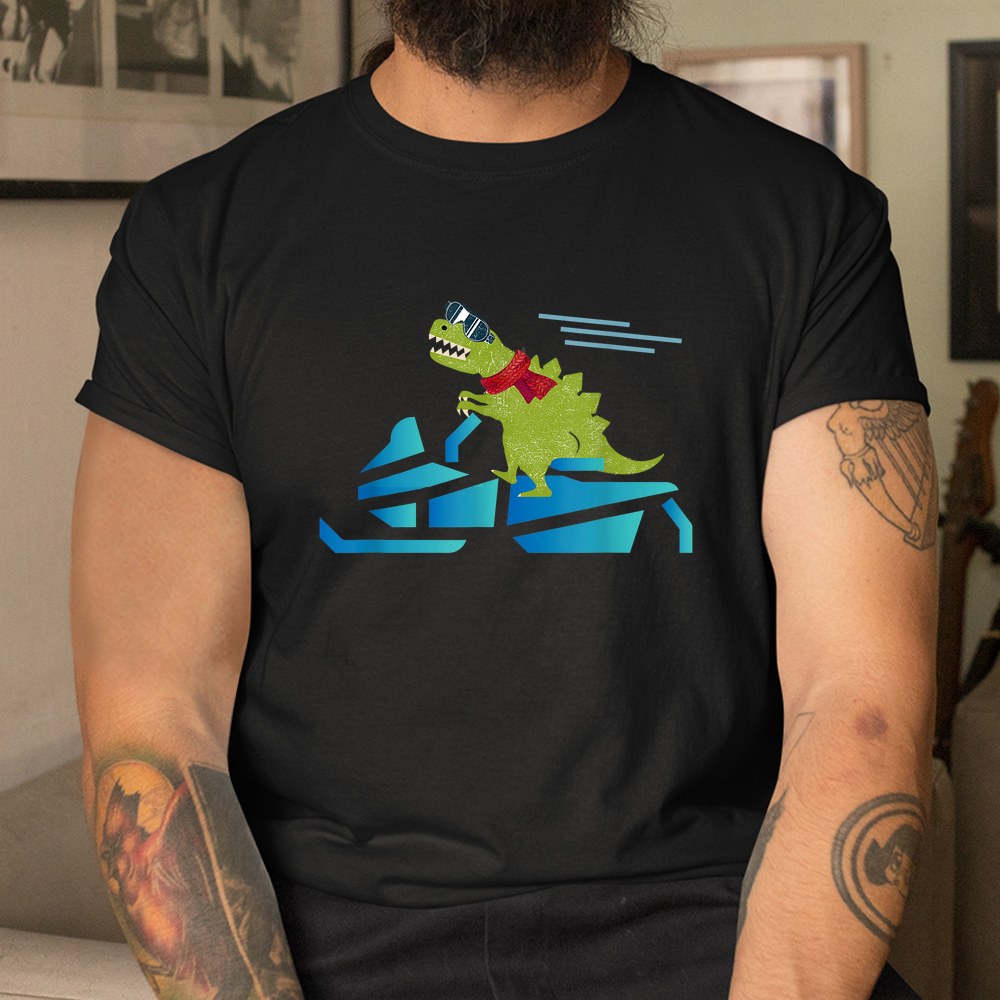 T Rex Racing Snowmobile Cool T Rex Dinosaur Christmas Shirt
