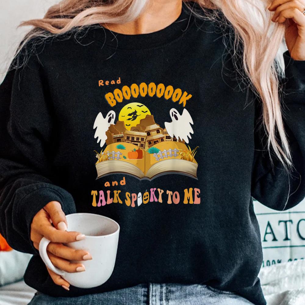 Talk Spooky To Me Read Book Halloween Vibes Ghost Shirt