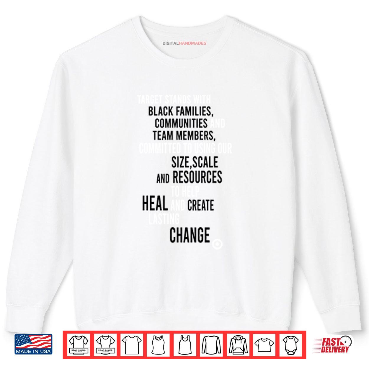 Target Stands With Black Families Communities And Team Members Shirt: Target Stands With Black Families Shirt, Black Communities Shirt, Team Members Shirt, Social Justice Shirt, Black Lives Matter Shirt, Corporate Responsibility Shirt, Equality Shirt, BLM Shirt, Community Support Shirt, Statement Shirt