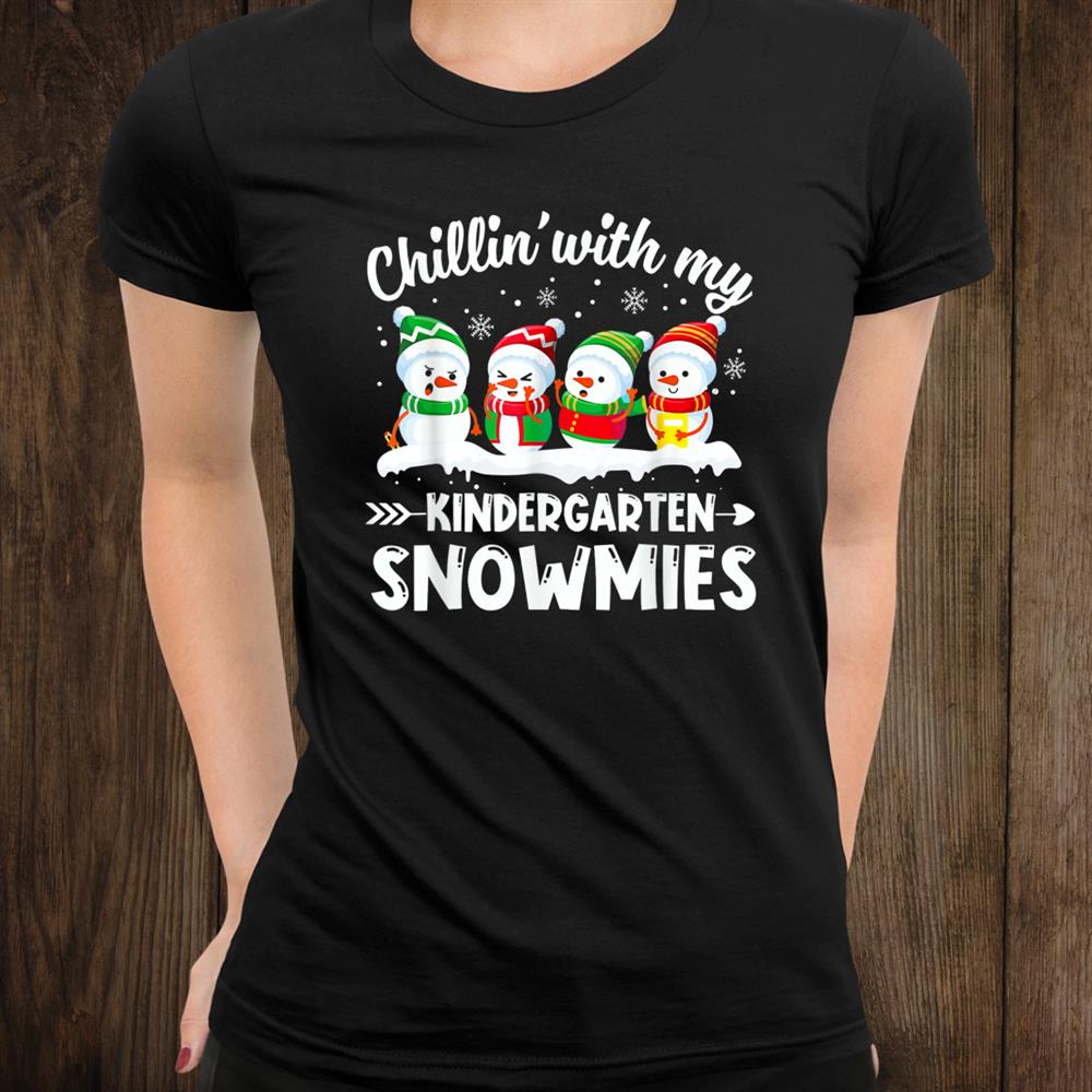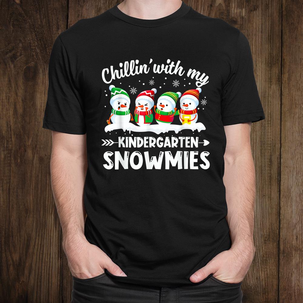 Teacher Christmas Shirt Chillin With Kindergarten Snowmies Shirt, hoodie, sweatshirt, long sleeve and ladies T-shirt