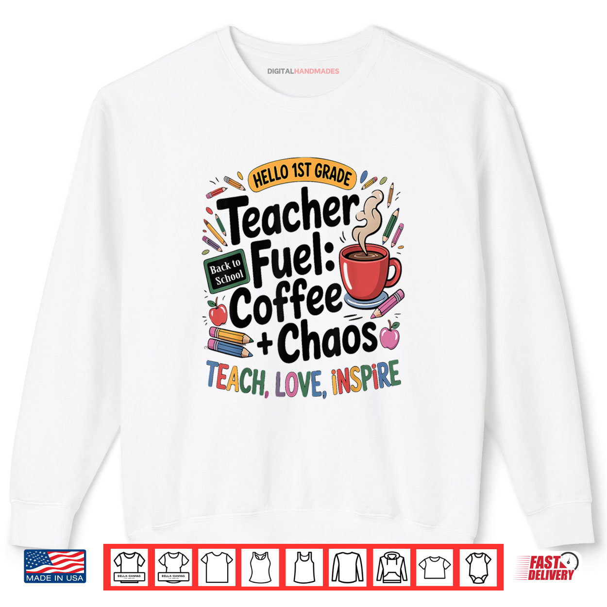 Teacher Fuel Coffee Chaos Back to School 1st Grade Shirt, Teacher Fuel Shirt, Coffee Chaos Shirt, Back to School Shirt, 1st Grade Shirt, Teacher Shirt, Coffee Lover Shirt, First Grade Teacher Shirt, School Humor Shirt, Teacher Life Shirt