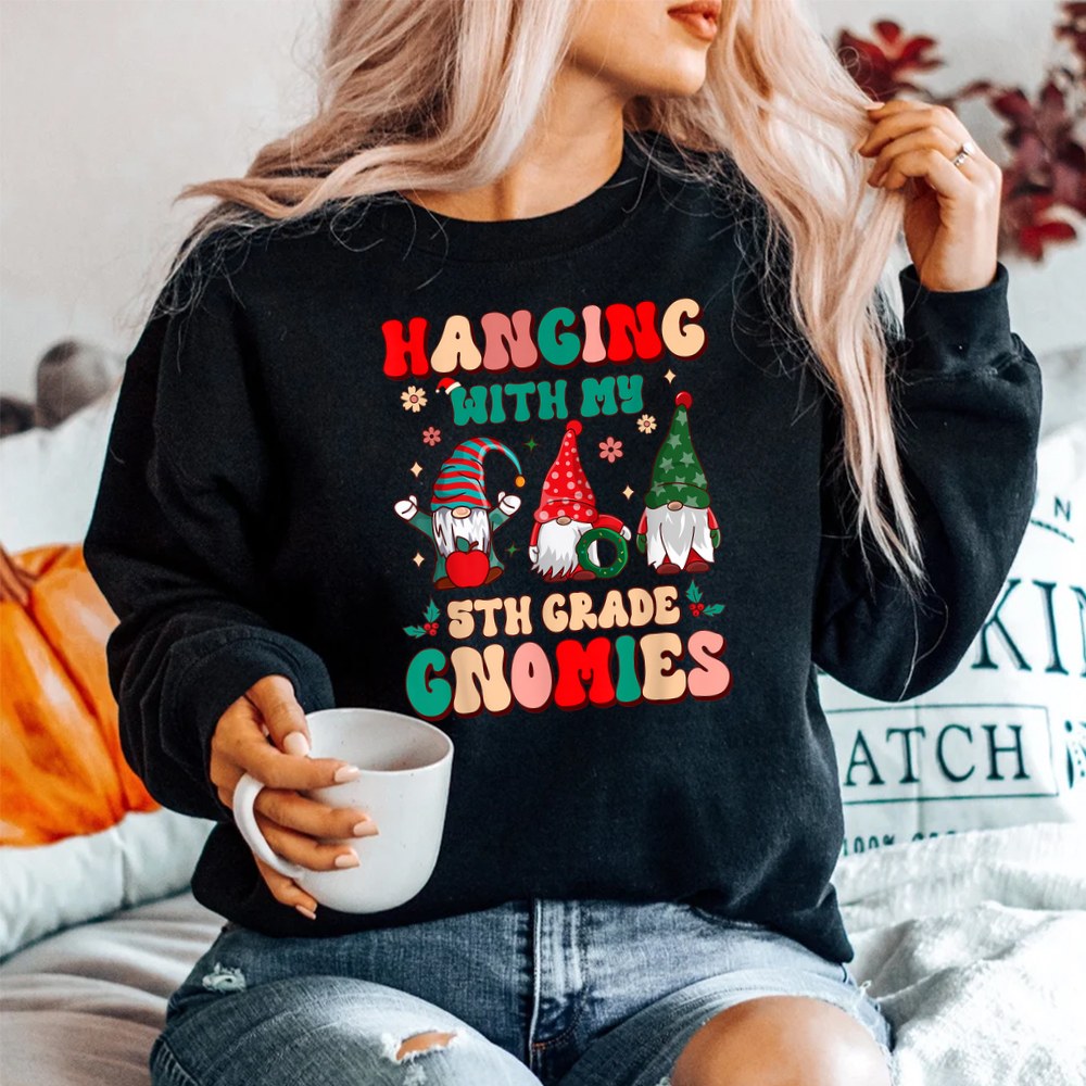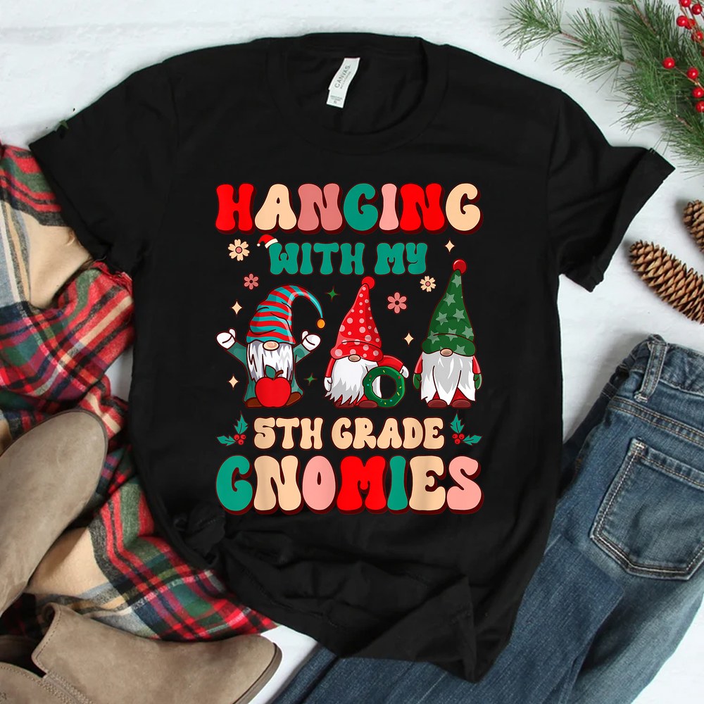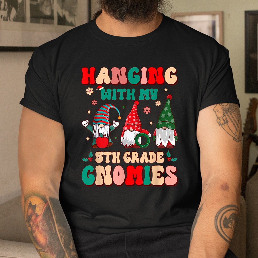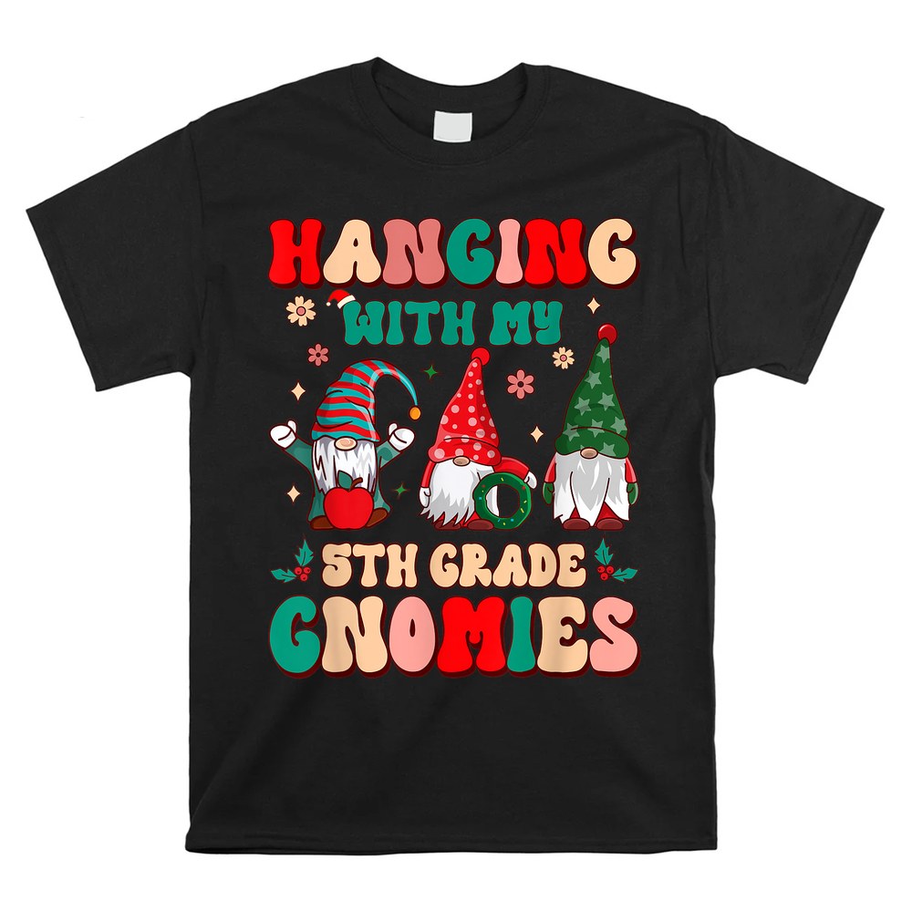 Teacher Hanging With My Gnomies 5th Grade Christmas Groovy Shirt