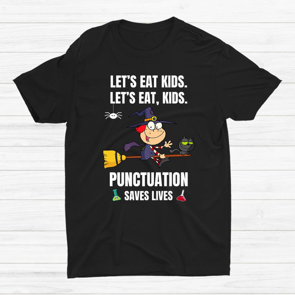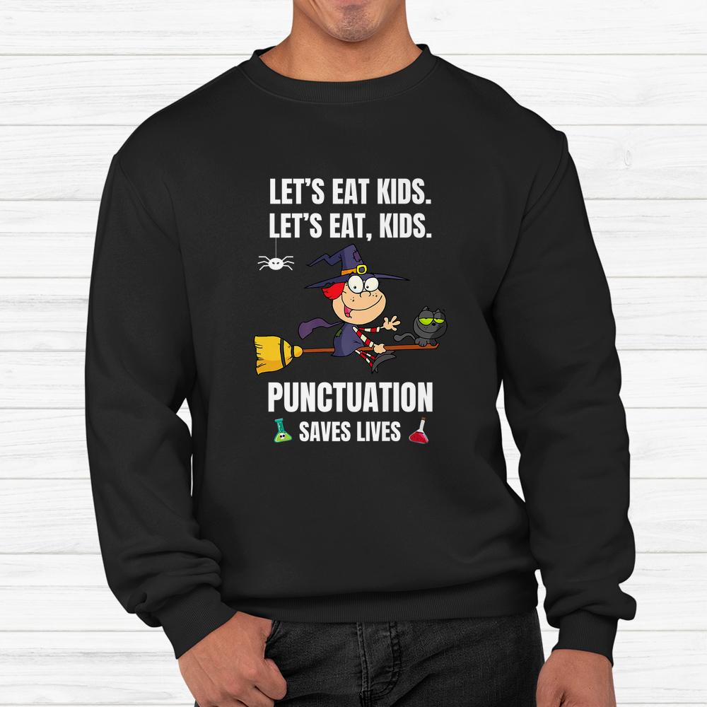 Teachers Halloween Eat Kids Punctuation Saves Lives Shirt, hoodie, sweatshirt, long sleeve and ladies T-shirt