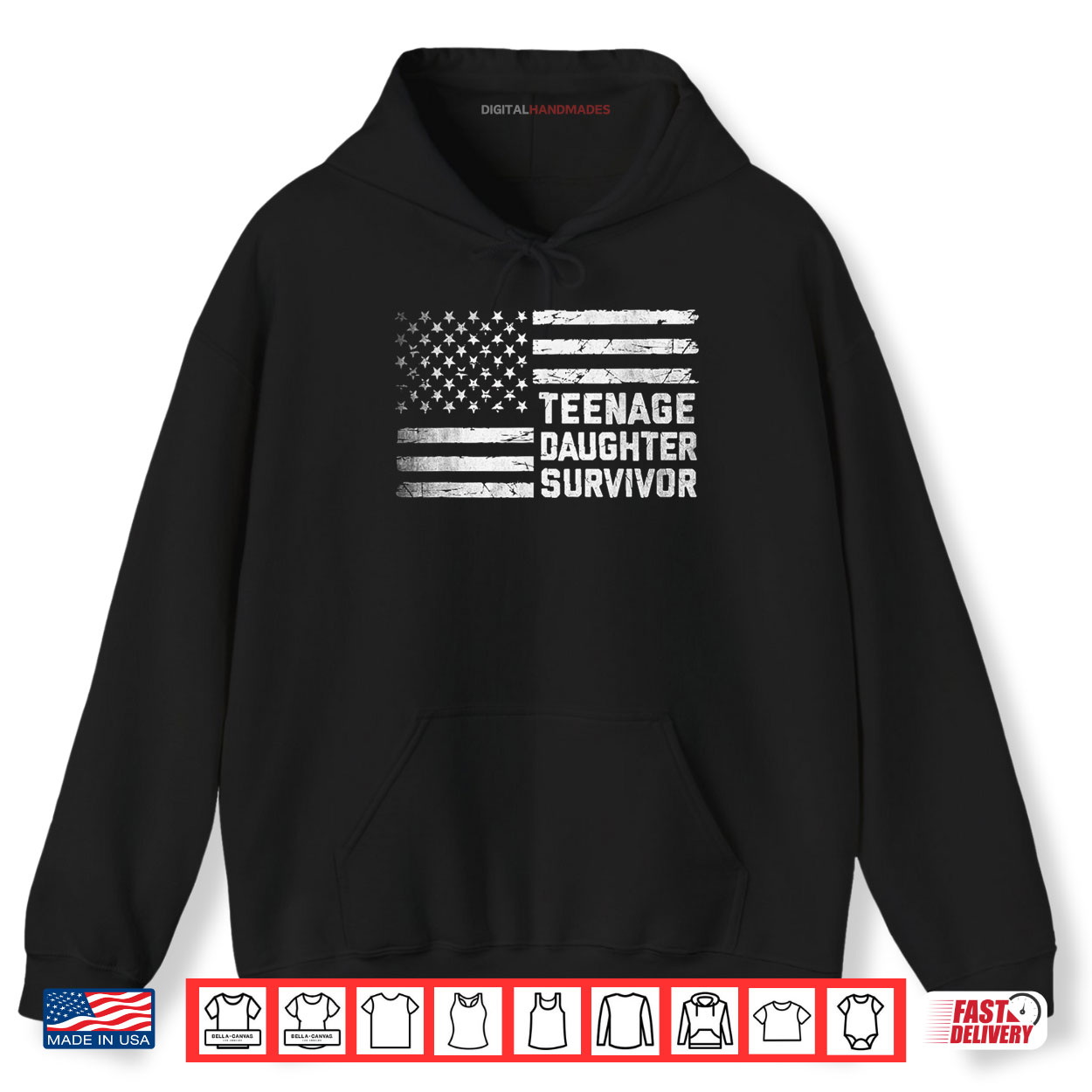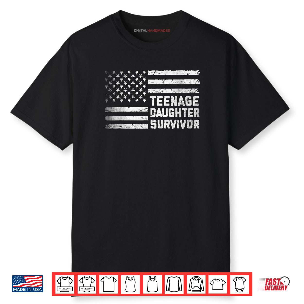 Teenage Daughter Survivor American Flag Father’s Day Quote Shirt, Teenage Daughter Survivor Funny Dad Shirt, Fathers Day Quote From Dad Of Teen Shirt, American Flag Sarcastic Parent Humor Shirt, Surviving A Teenage Daughter Joke Shirt, Proud Dad Of A Teen Girl Life Shirt, Hilarious Fatherhood Struggle Apparel Shirt, My Daughter Is A Teenager Survivor Shirt, Funny And Relatable Dad Of Teen Shirt, Patriotic Dad With Attitude Shirt