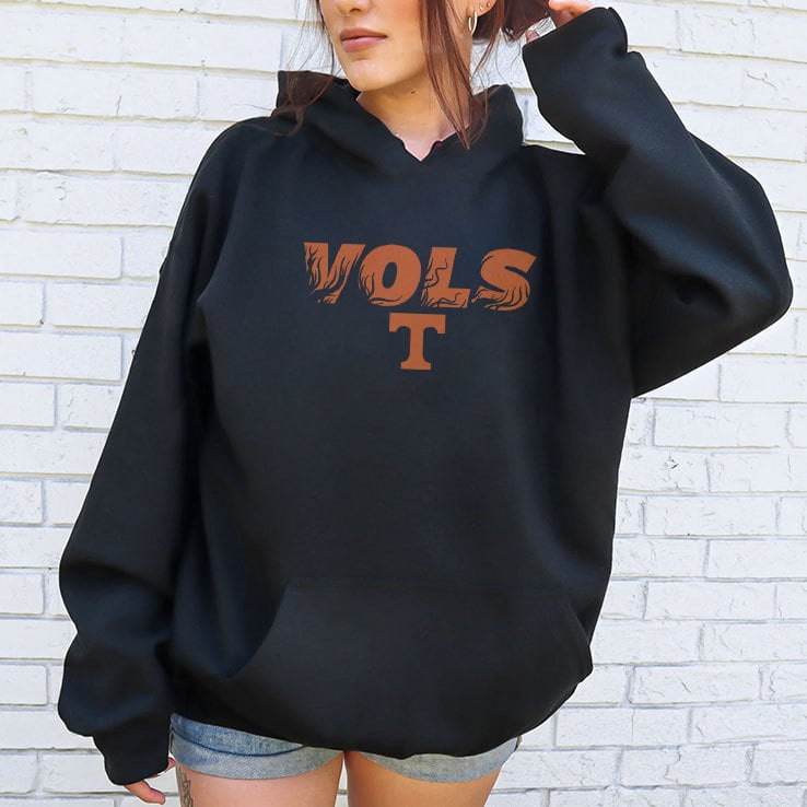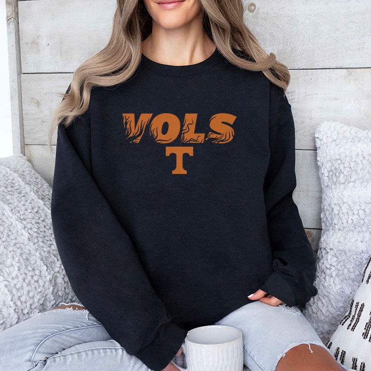 The shirt refers to Tennessee Football’s special uniforms and game aesthetic that feature a darkened, sleek color scheme, with black jerseys accented by the team’s iconic orange.