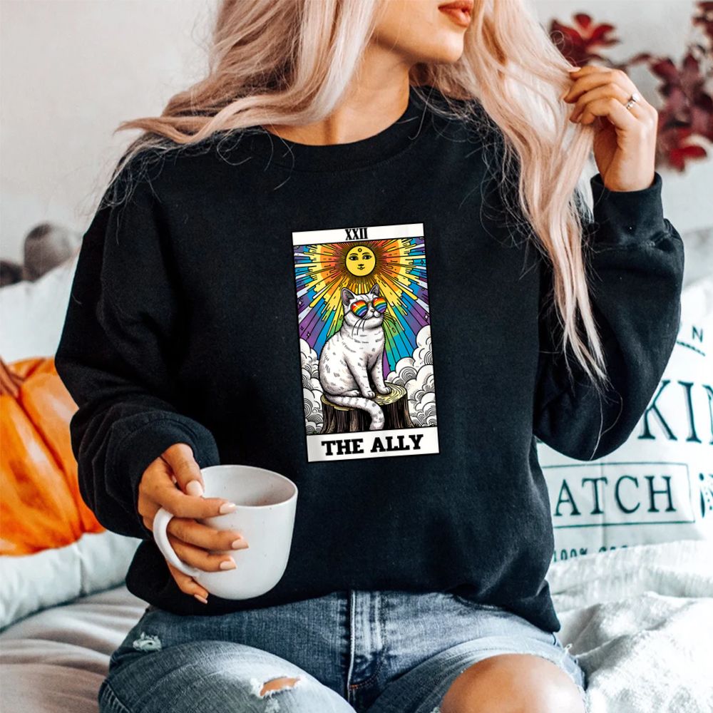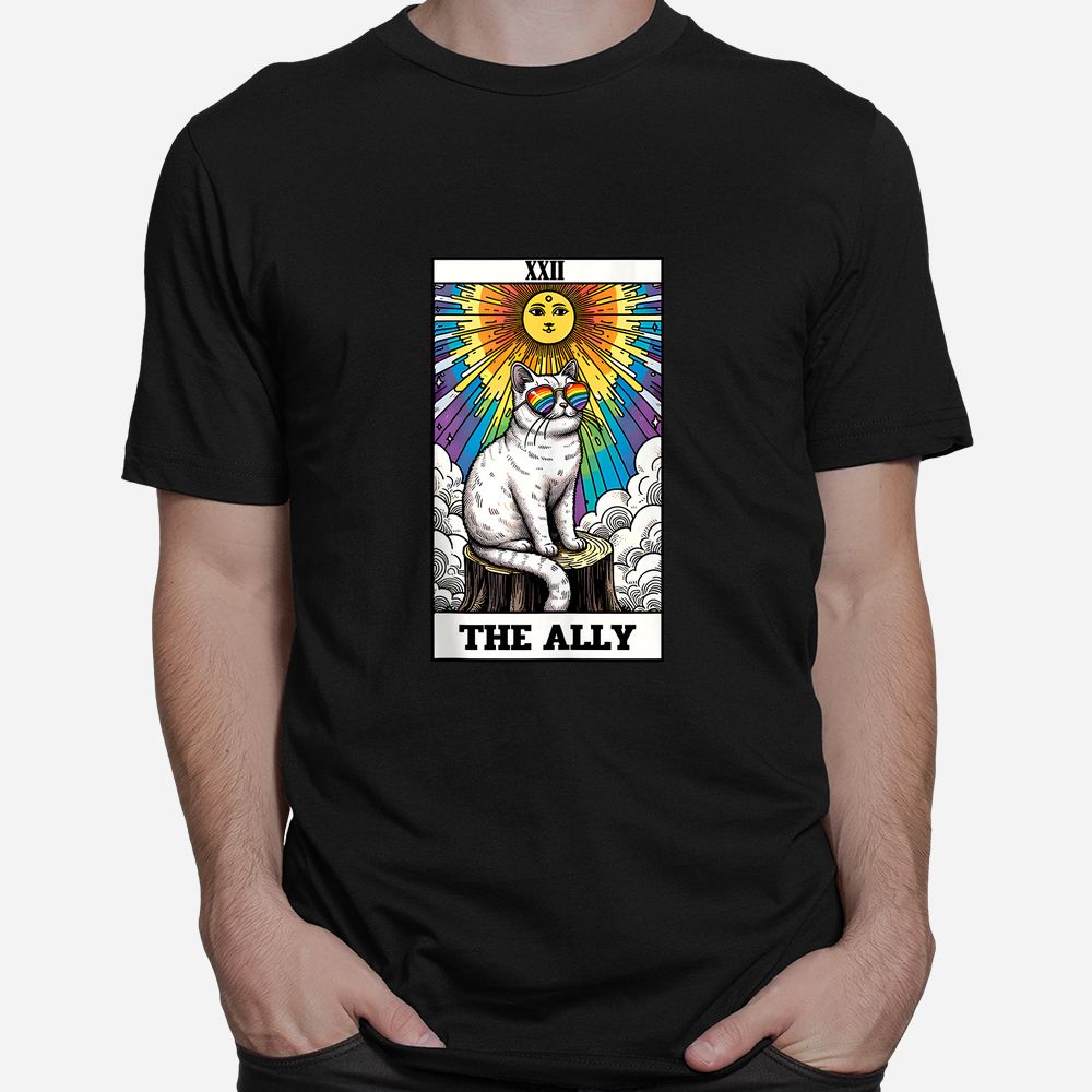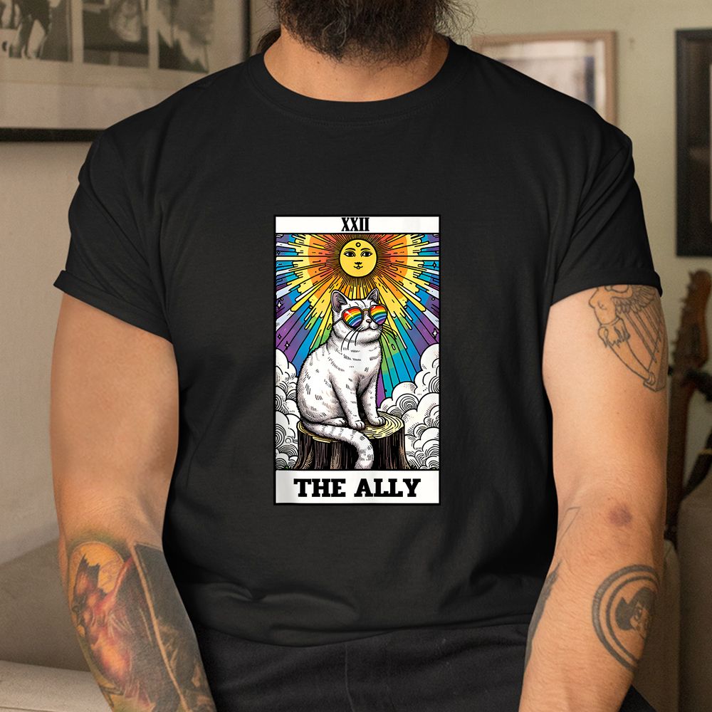 The Ally Cat Rainbow LGBTQ Tarot Card Les Gay Pride Support Shirt