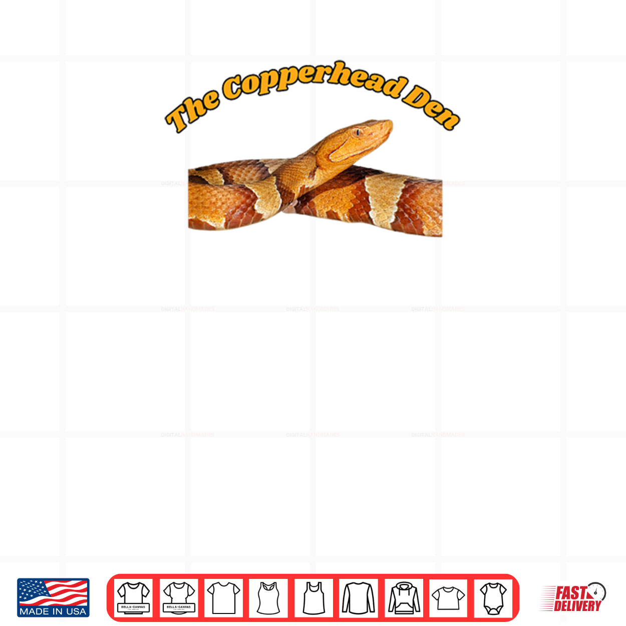 the copperhead den, snake lover, reptile pet, unique graphic, copperhead snake, animal art, nature theme, wildlife, outdoor apparel, viper