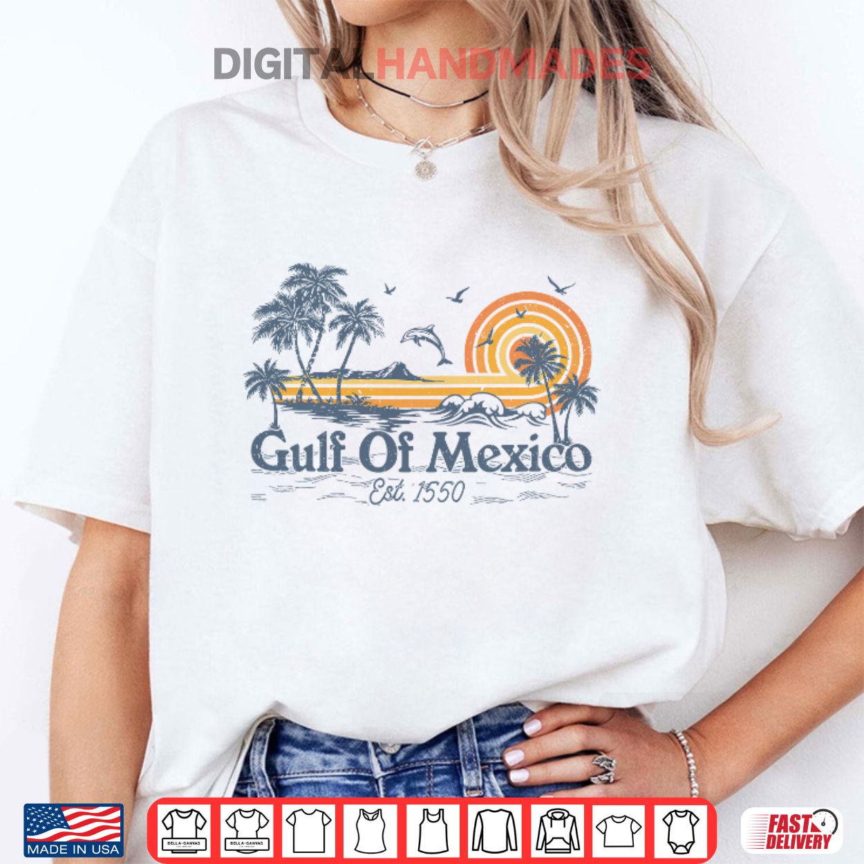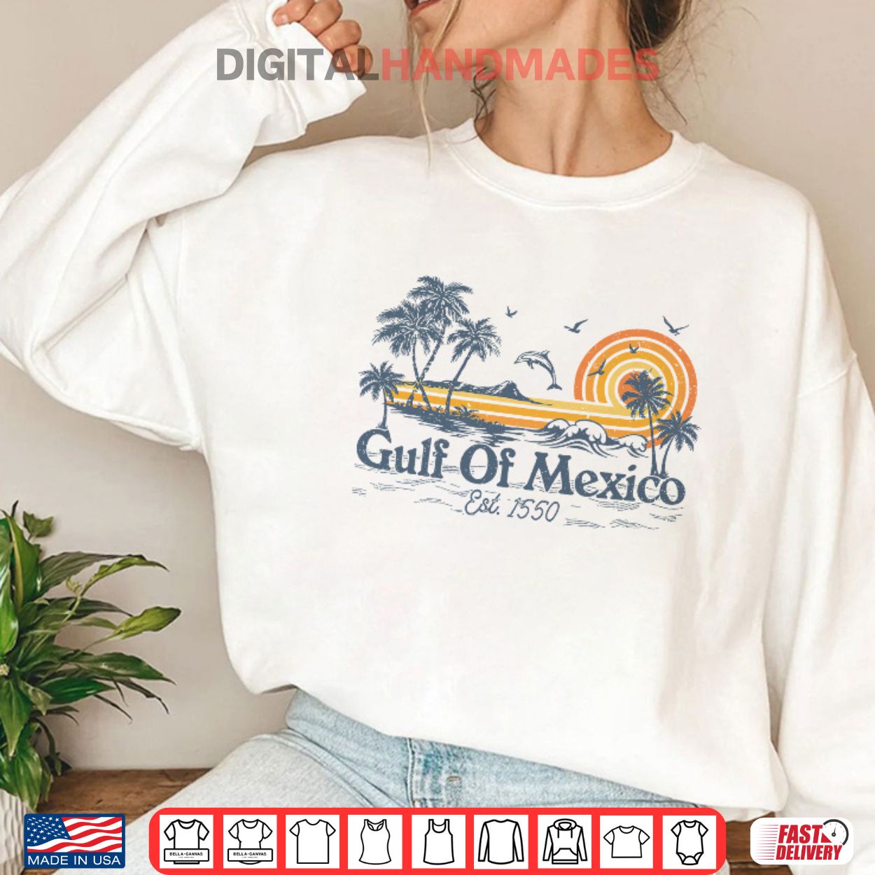 “Gulf of Mexico Estd 1550”: This directly references the Gulf of Mexico and the year it was reportedly first explored and mapped by Europeans. This emphasizes the long-standing historical identity of the region.