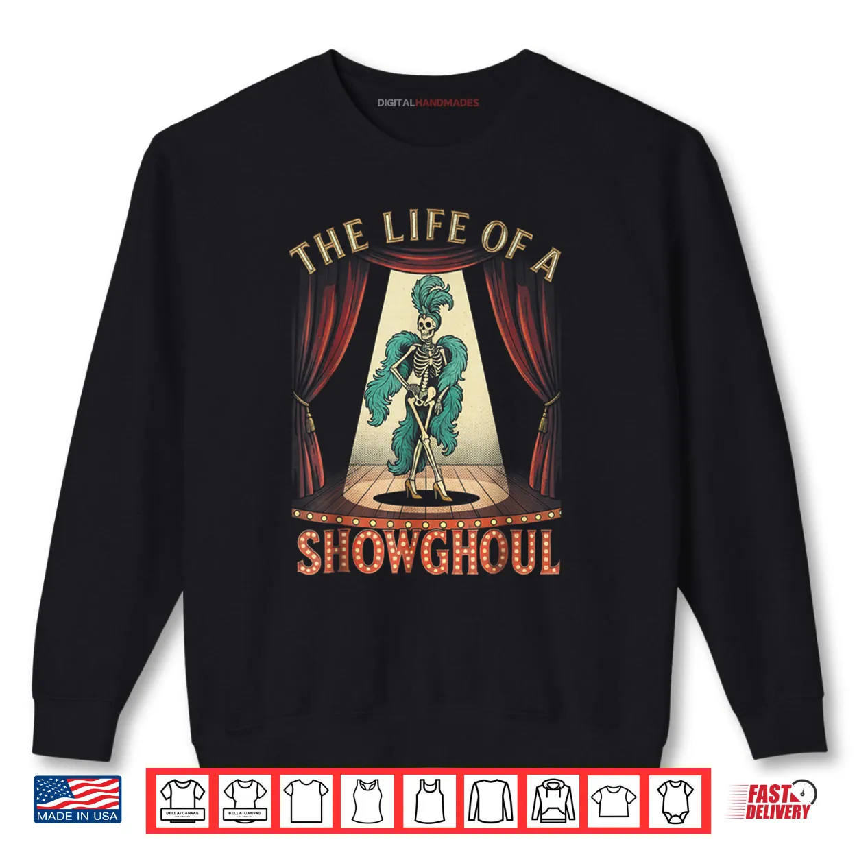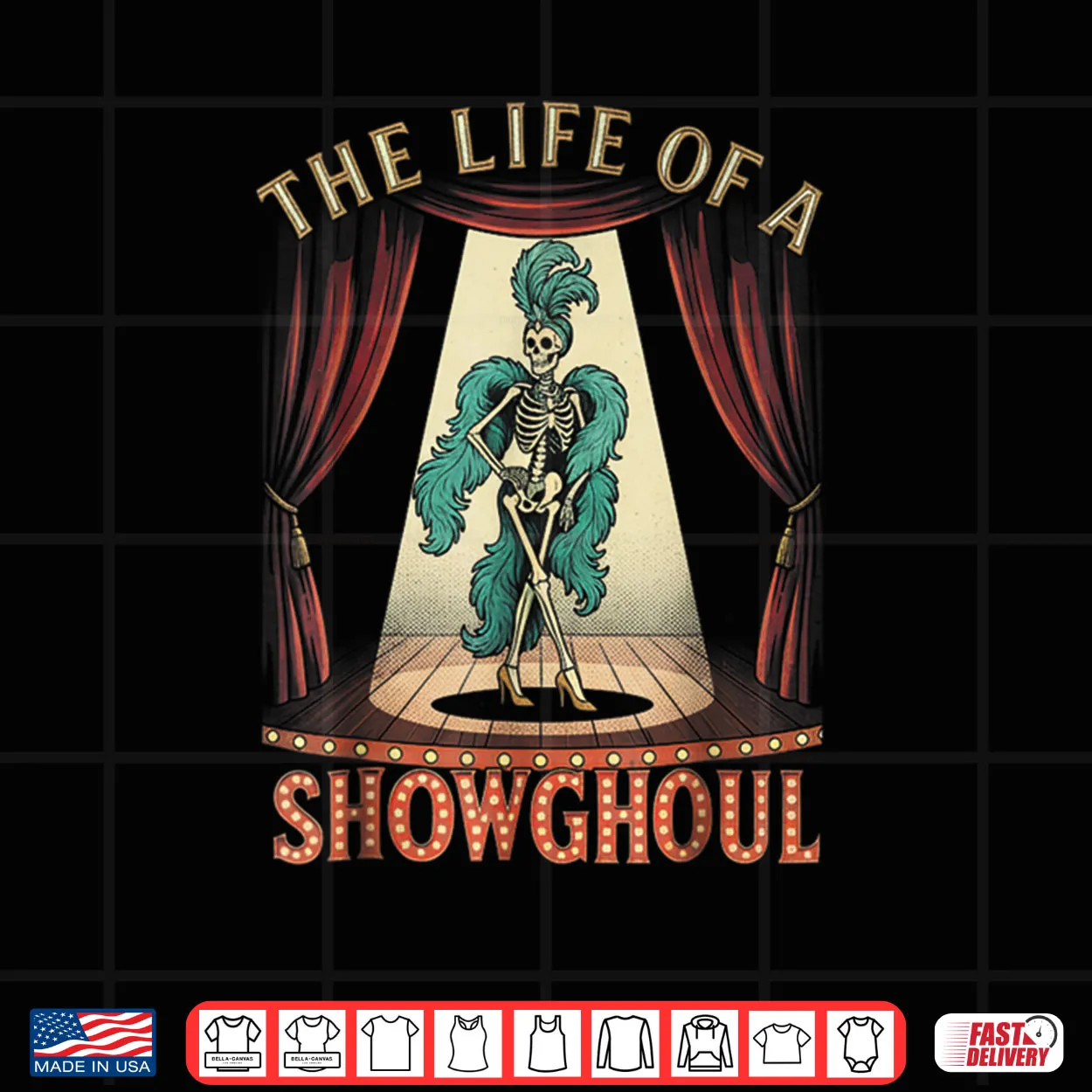 The Life of A Showghoul Halloween Show Skeleton Girl Retro Shirt