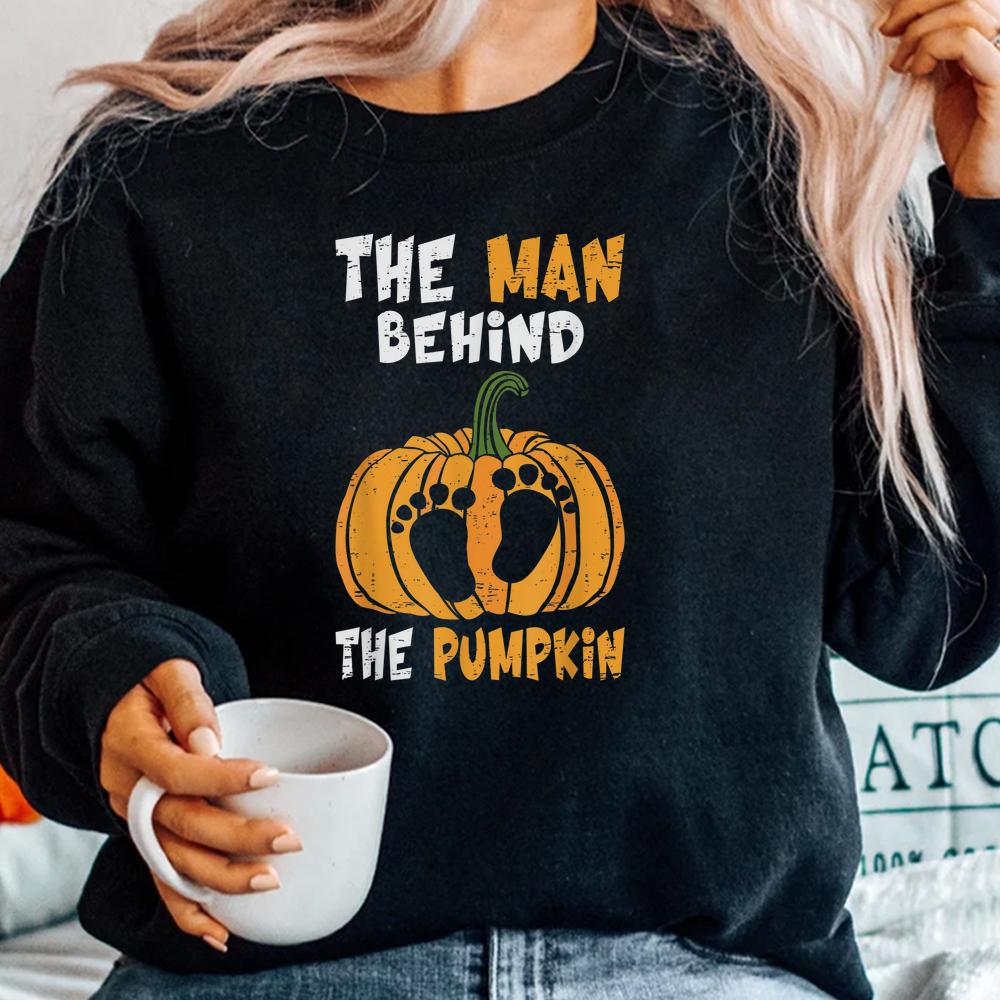 The Man Behind The Pumpkin Dad Halloween Shirt, hoodie, sweatshirt, long sleeve and ladies T-shirt