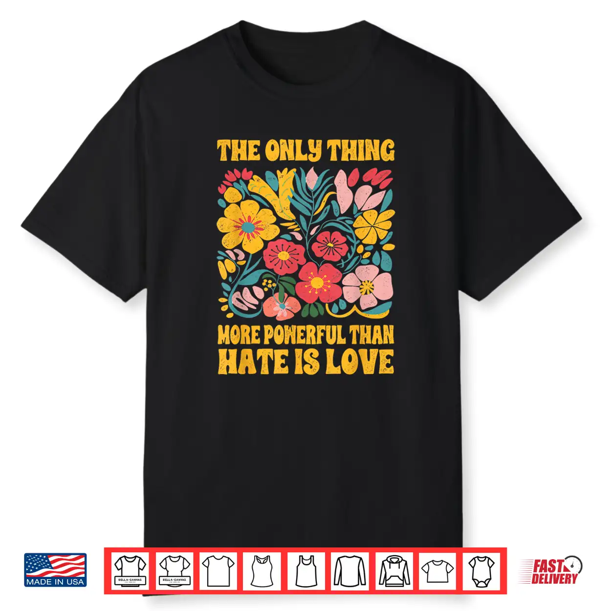 The Only Thing More Powerful Than Hate Is Love Floral Retro Shirt