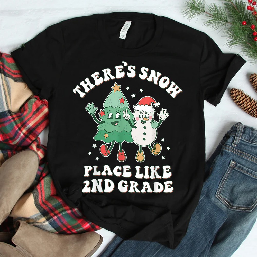 Theres Snow Place Like 2nd Grade Merry Teacher Xmas Snowman Shirt