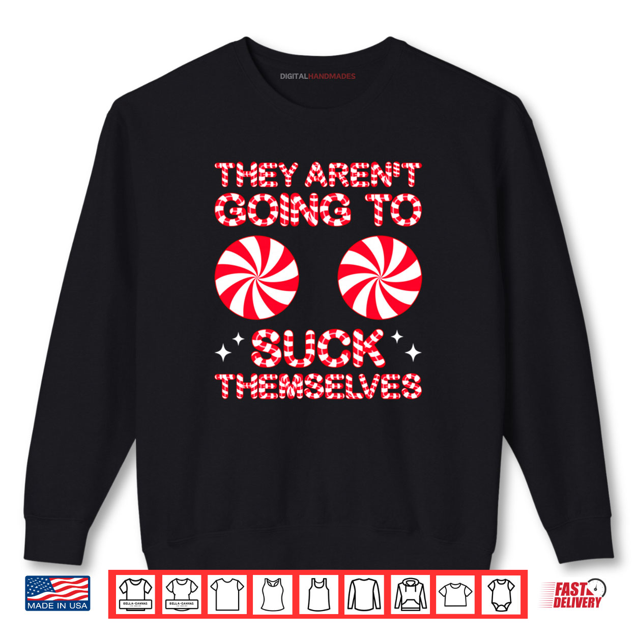 they aren’t going to, suck themselves, funny candies, christmas joke, adult humor, naughty christmas, candy cane, holiday fun, witty xmas, inappropriate