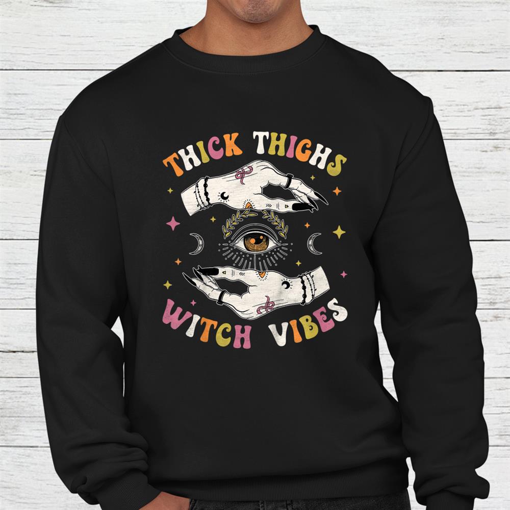 Thick Thighs Witch Vibes Halloween Moon Witches Tattoo Shirt, hoodie, sweatshirt, long sleeve and ladies T-shirt