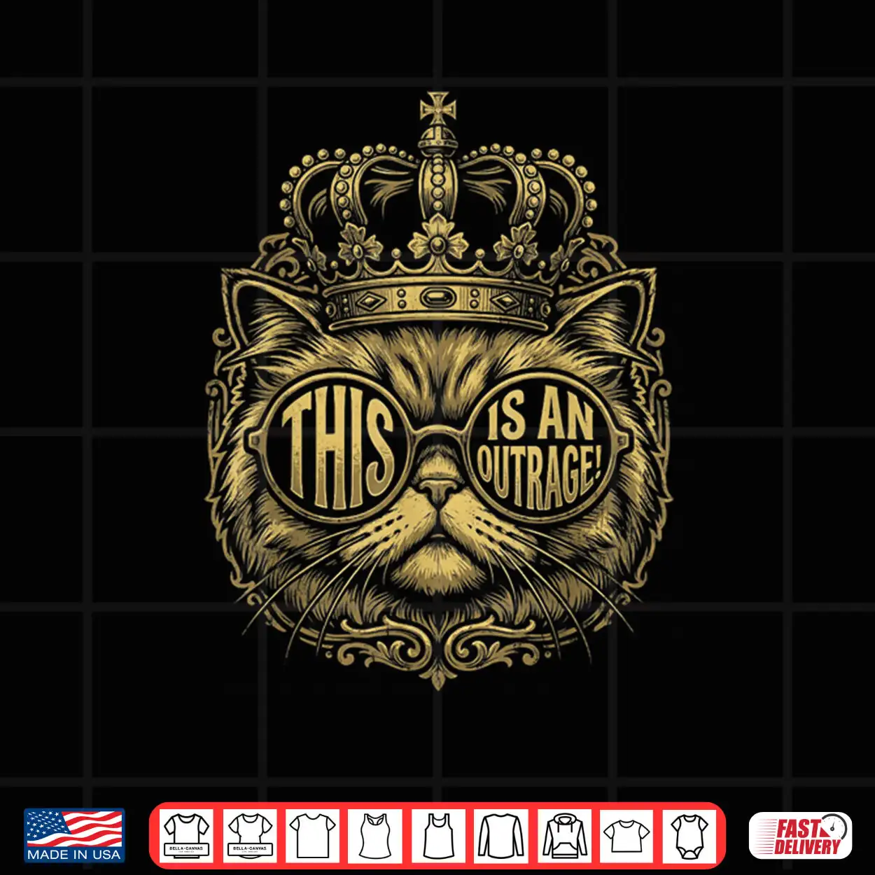 This is an Outrage Funny Princess Cat Donut Gold Womens Mens Shirt