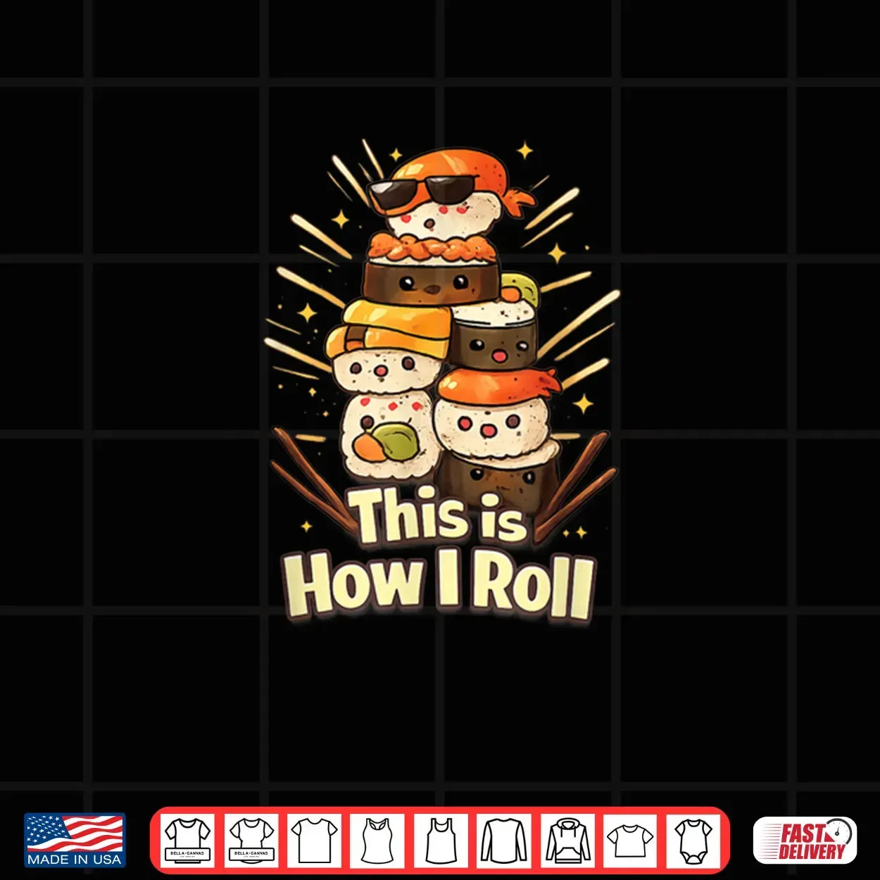 this is how i roll, cute kawaii, sushi roll, sushi lover, pun, food humor, japanese, adorable, animal, shirt