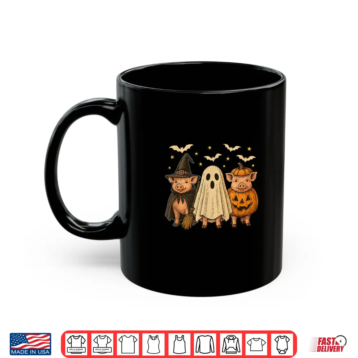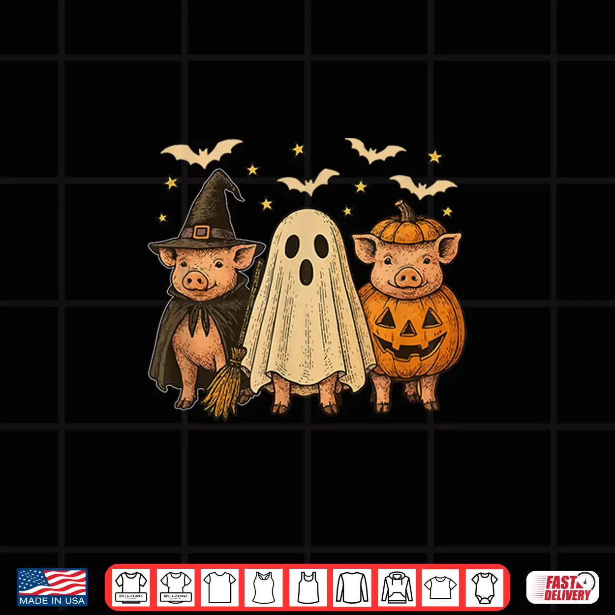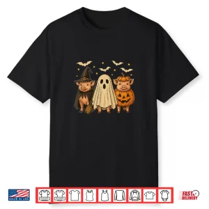 Three Halloween Pigs Cosplay Witch Boo Carved Pumpkin Shirt