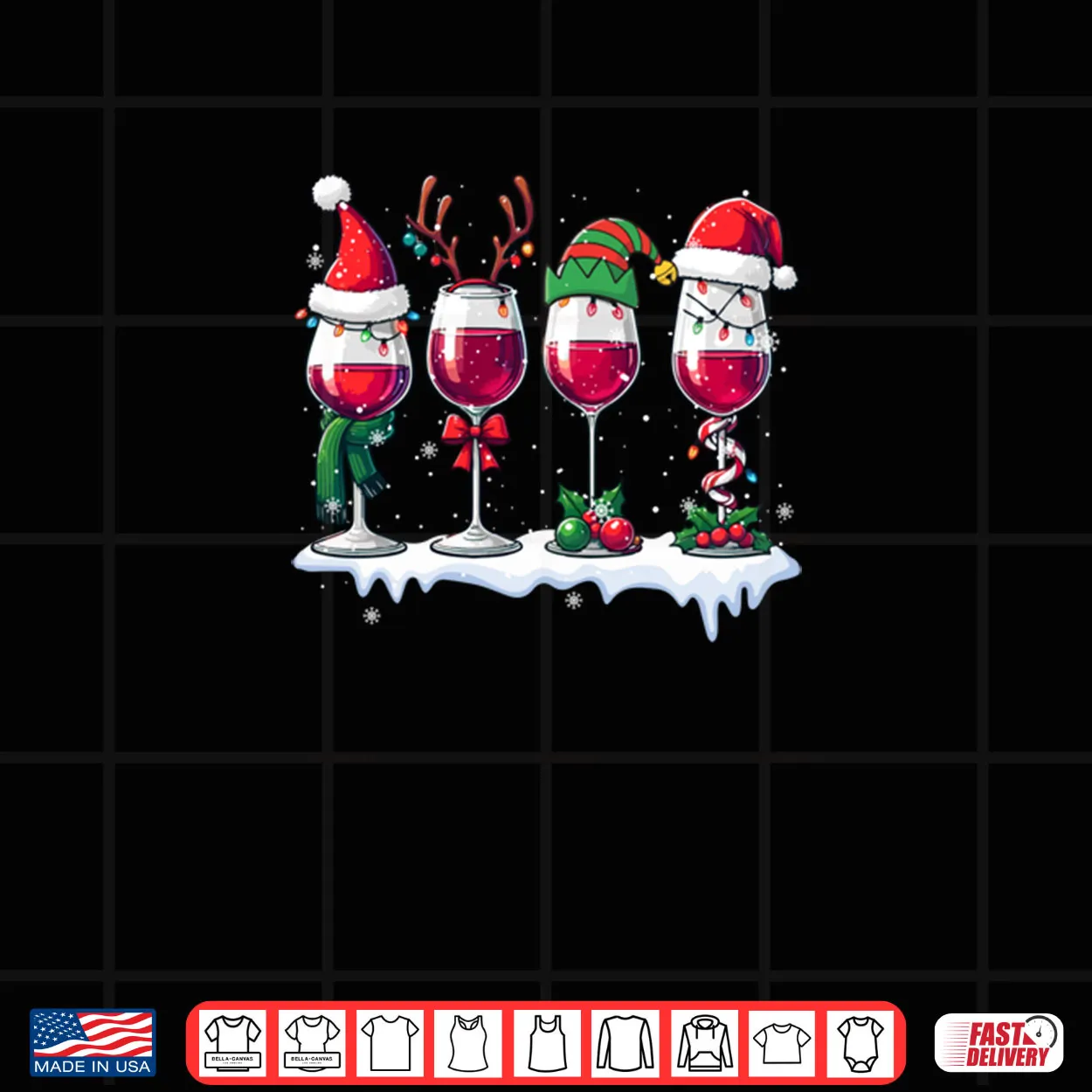 Three Santa Elf Reindeer Wine Glasses Christmas Drinker Shirt