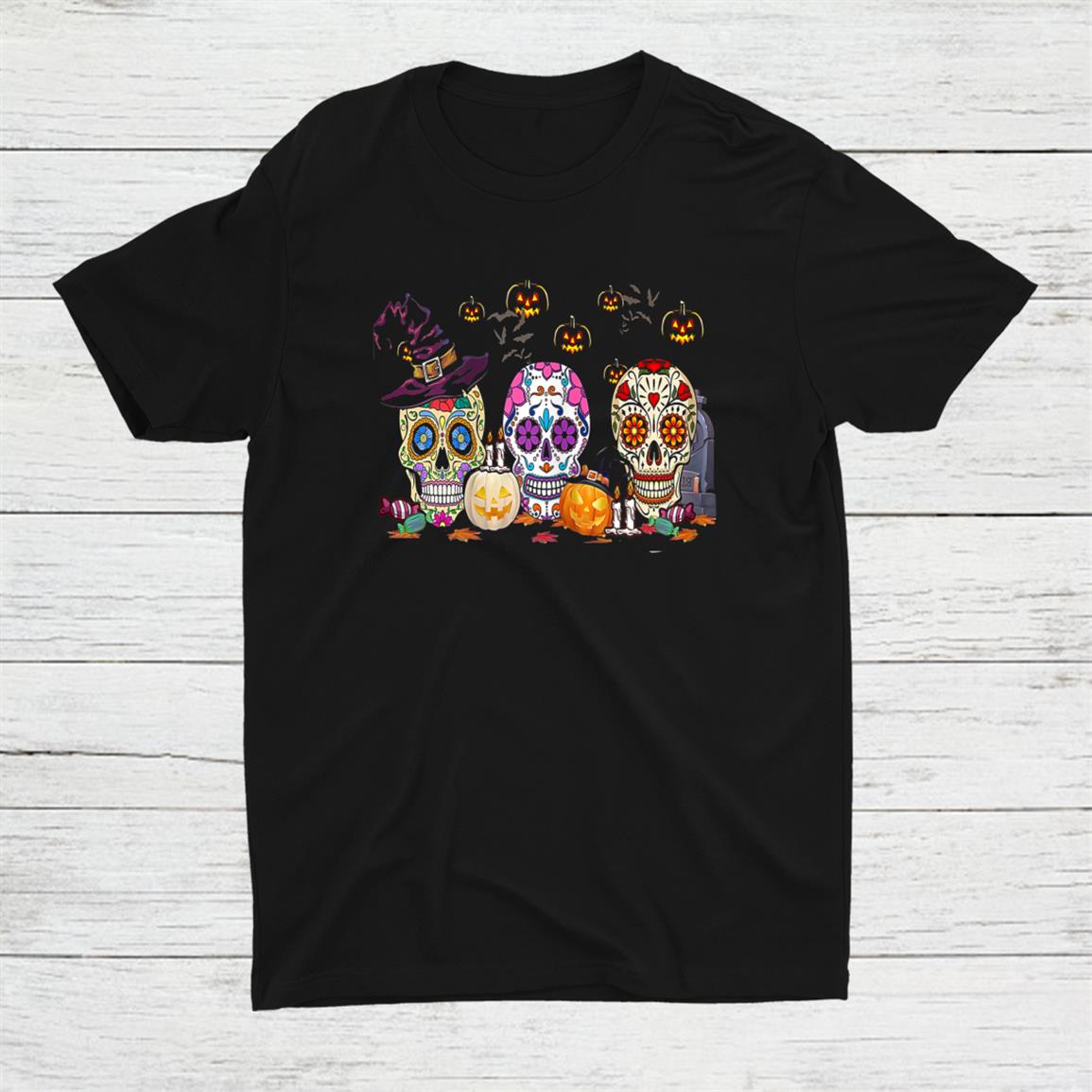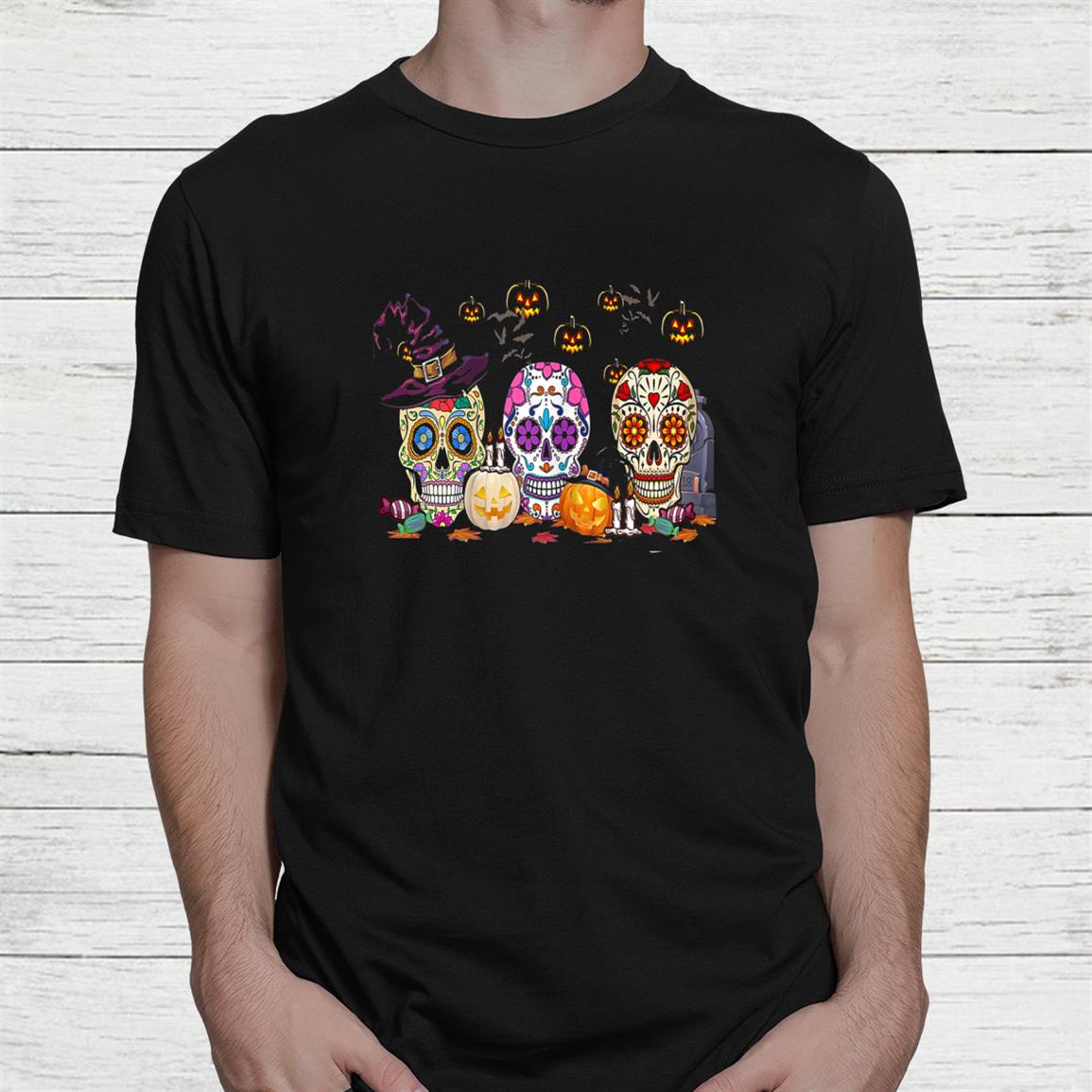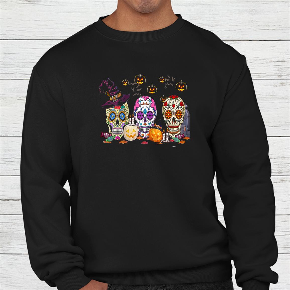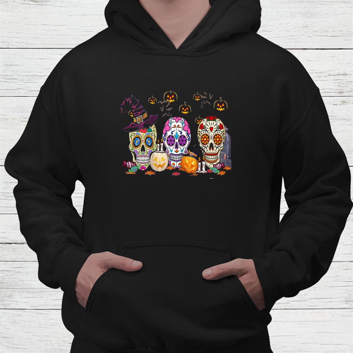 Three Sugar Skull Witch Pumpkin Halloween Shirt, hoodie, sweatshirt, long sleeve and ladies T-shirt