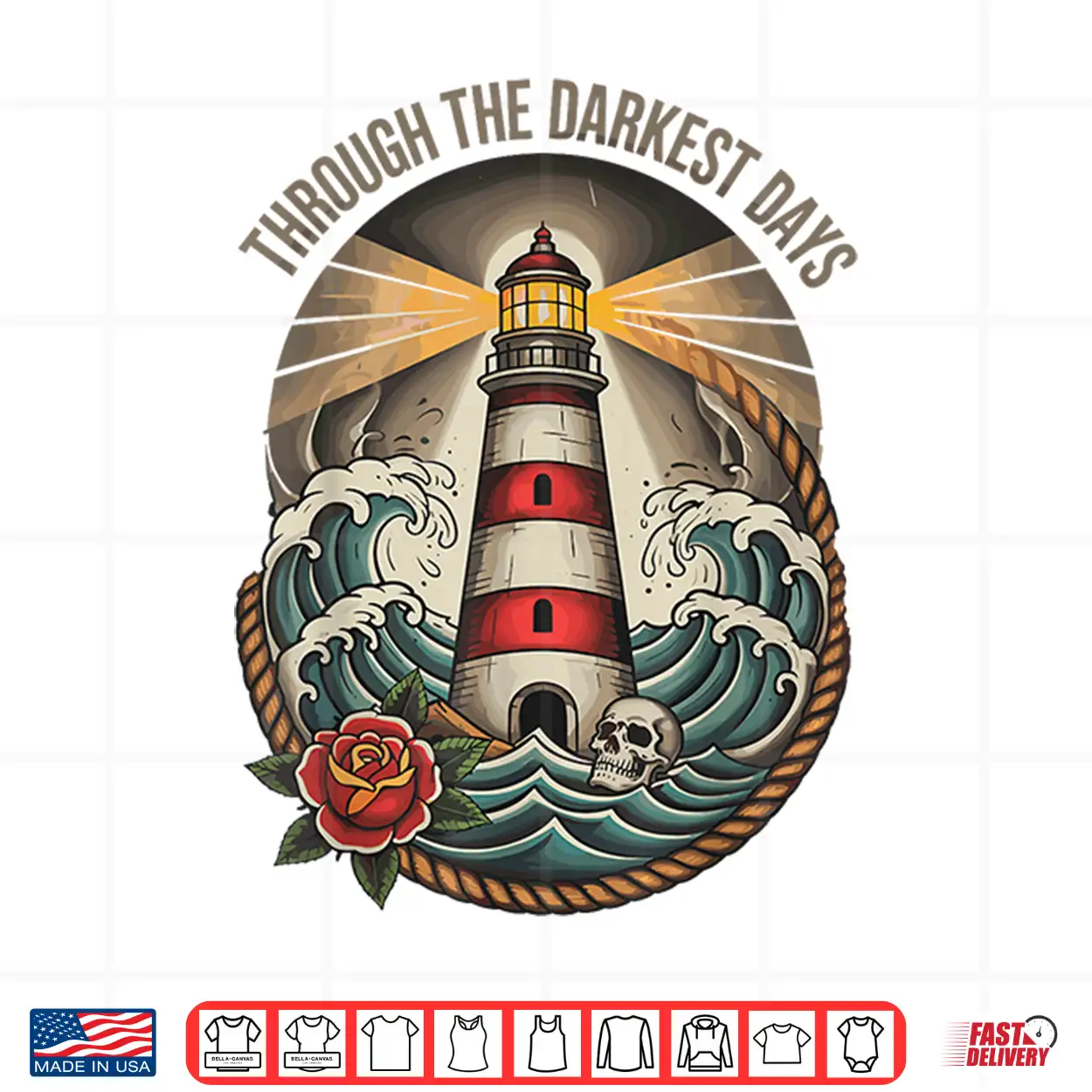 Through Darkest Days American Traditional Lighthouse Tattoo Shirt
