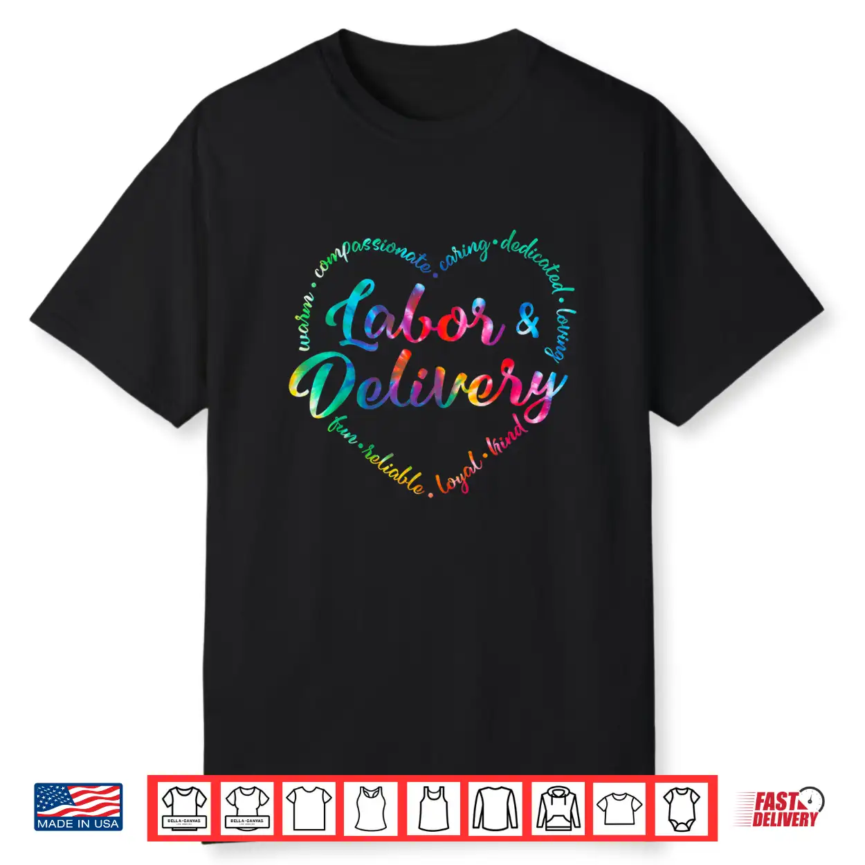 Tie Dye Labor And Delivery Nurse L&D Nurse Heart Word Shirt