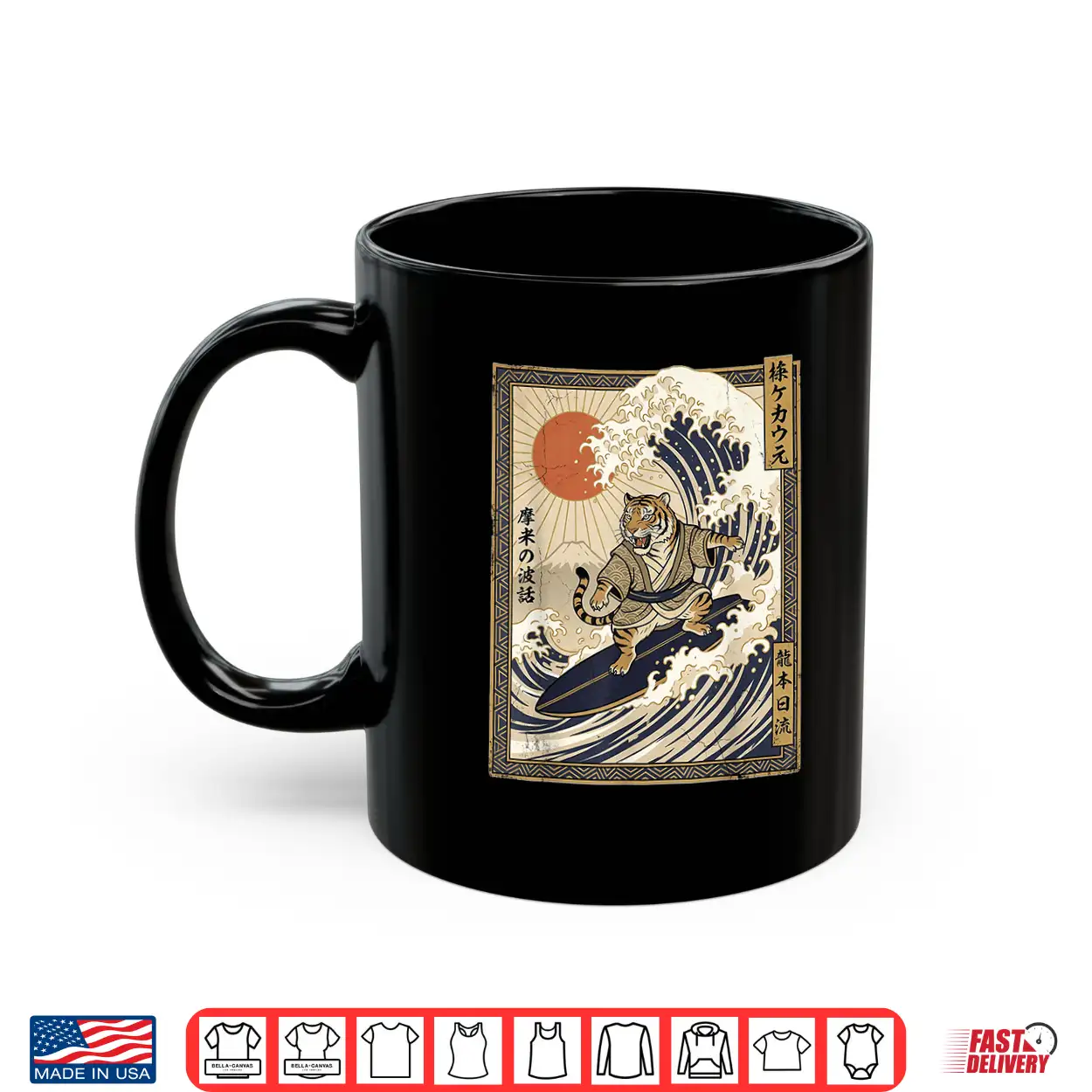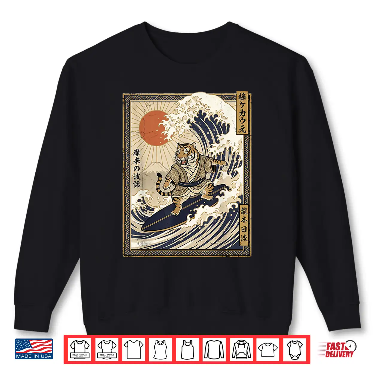 Art, shirt, Samurai, Tiger Japanese Surfing, Kanagawa Wave, Japan