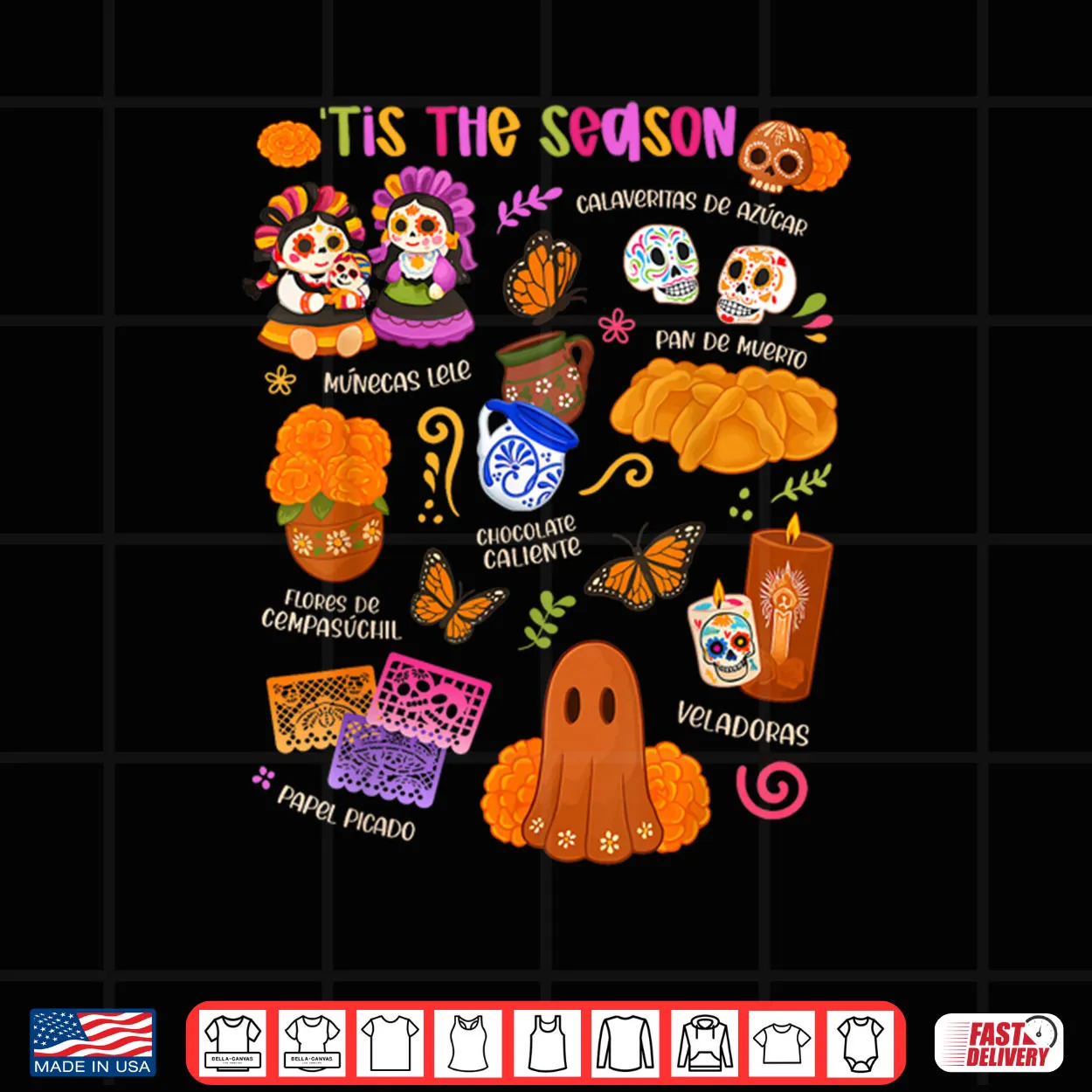 Tis The Season Dia De Los Muertos Sugar Skulls Day of Dead Shirt