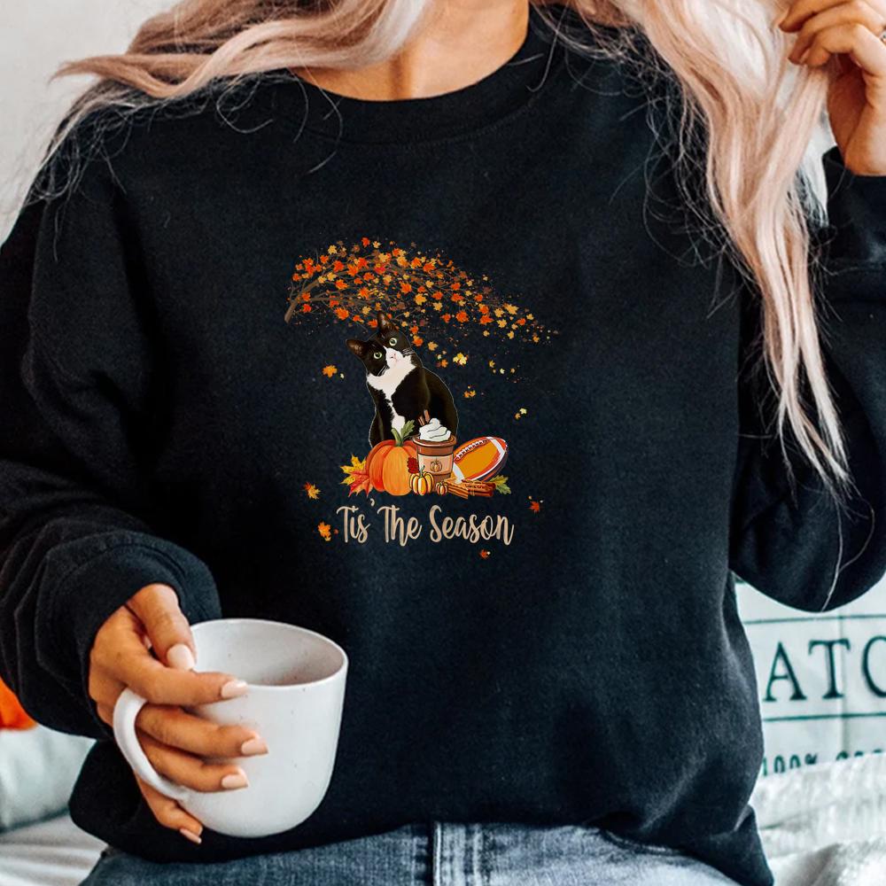 Tis The Season Pumpkin Spice Fall Halloween Cat Shirt