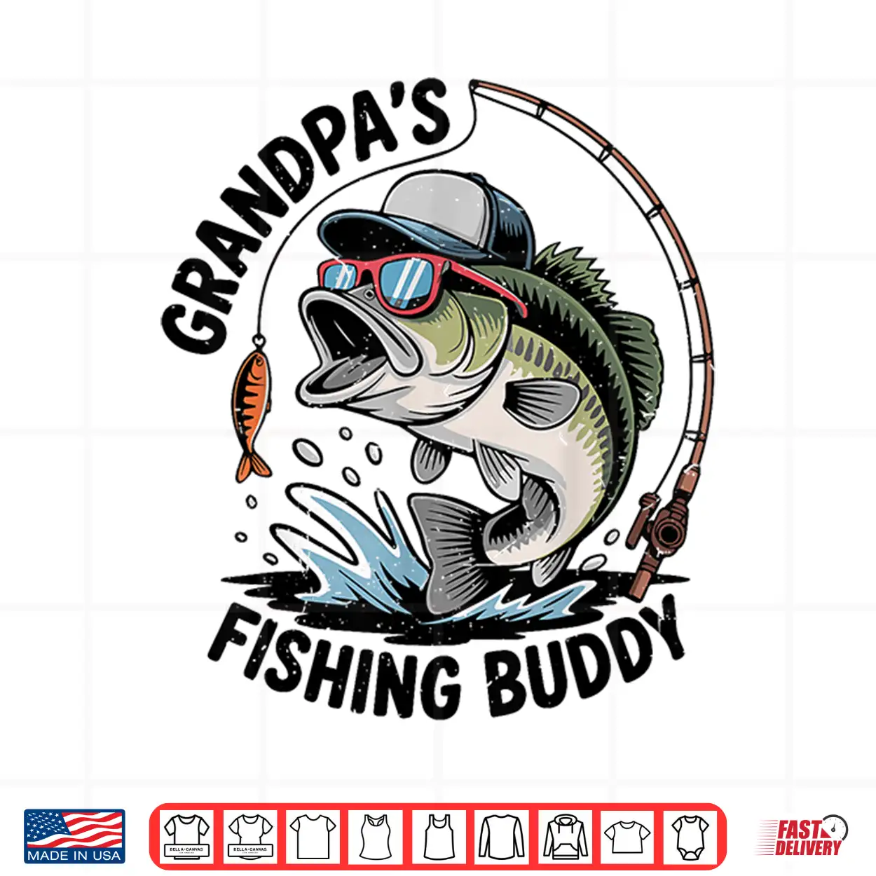 Toddler Boy Grandpa Fishing Buddy Funny Bass Fisherman Youth Shirt