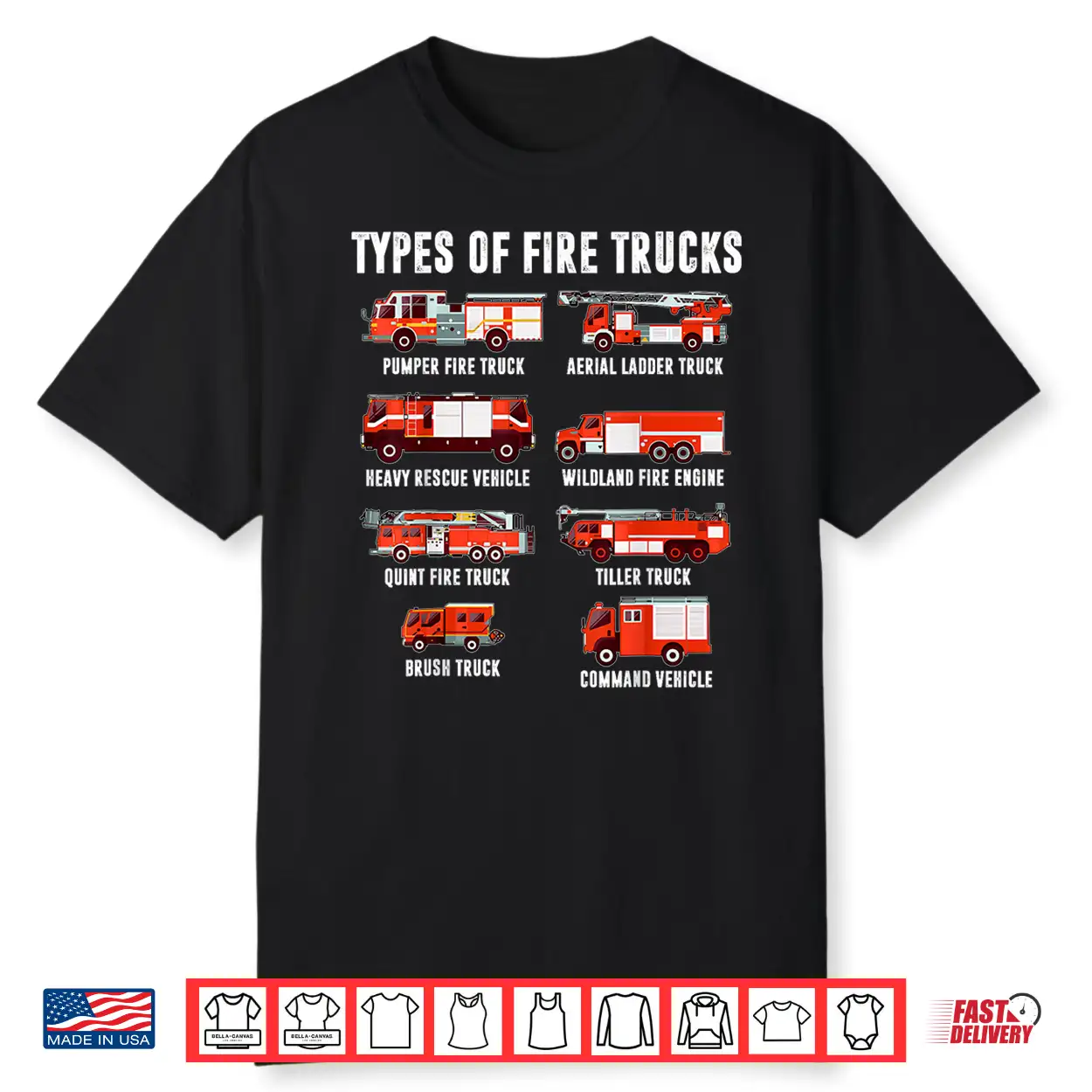 Toddler Boy Types Of Firetruck Firefighter Baby Dad Fireman Shirt