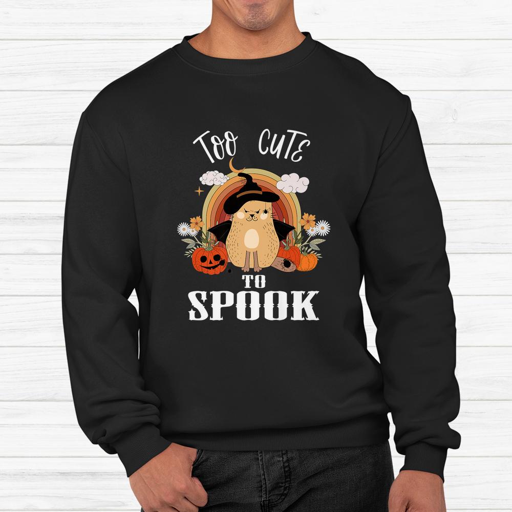 Too Cute To Spook Groovy Cat Halloween Shirt, hoodie, sweatshirt, long sleeve and ladies T-shirt