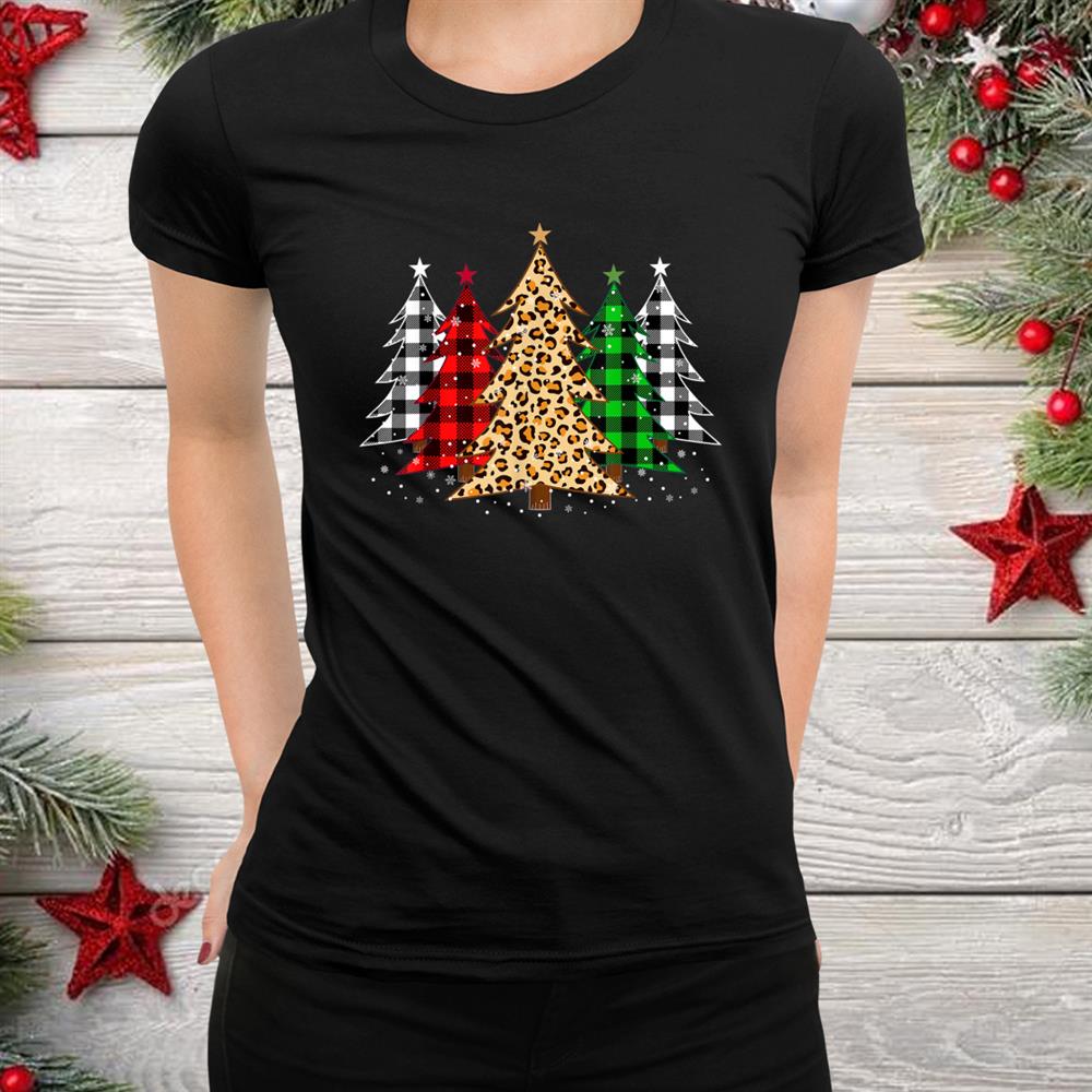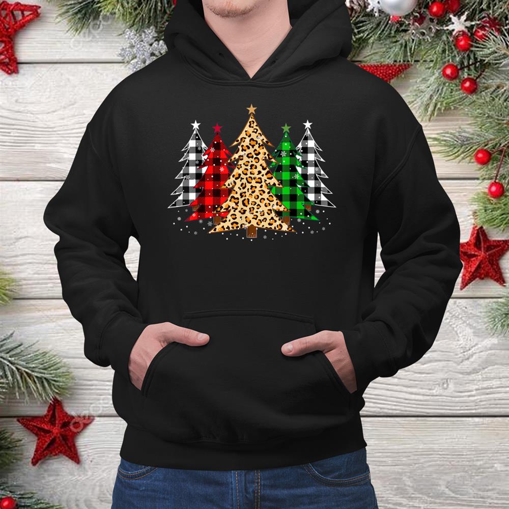 Trees With Leopard Plaid Print Merry Christmas Shirt, hoodie, sweatshirt, long sleeve and ladies T-shirt